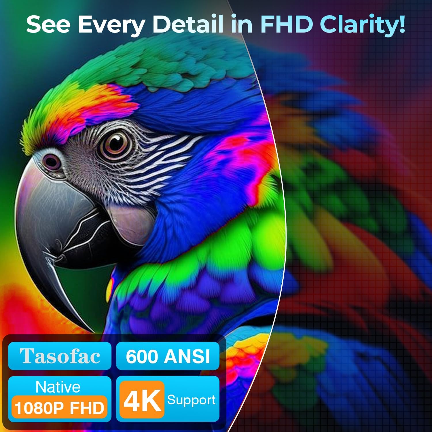【What’s the Main Difference?】Our video projectors comes with 1920*1080P native resolution, 4K supported, 600 ANSI brightness and 15000:1 contrast. This looks no different than others. NO! This home projector is equipped with advanced chip and LED lens. It offers a rich and vivid image with impressive color accuracy. If you are looking to purchase a high-end projector but don’t want to break your budget, this is the one for you!