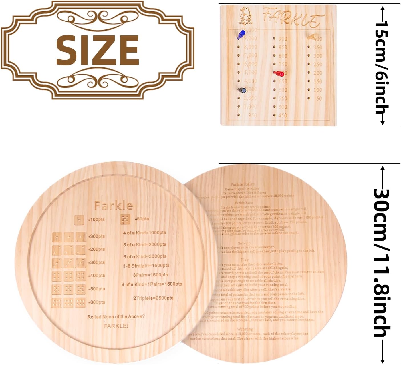 【Premium Tray and Board】This Farkle dice tray features a 12-inch wooden tray and an 8-inch scoring board. The design is durable and attractive, providing a stable base for gameplay. The 12 dice in two colors add variety and fun. Game rules are printed on the back of the tray for easy reference.