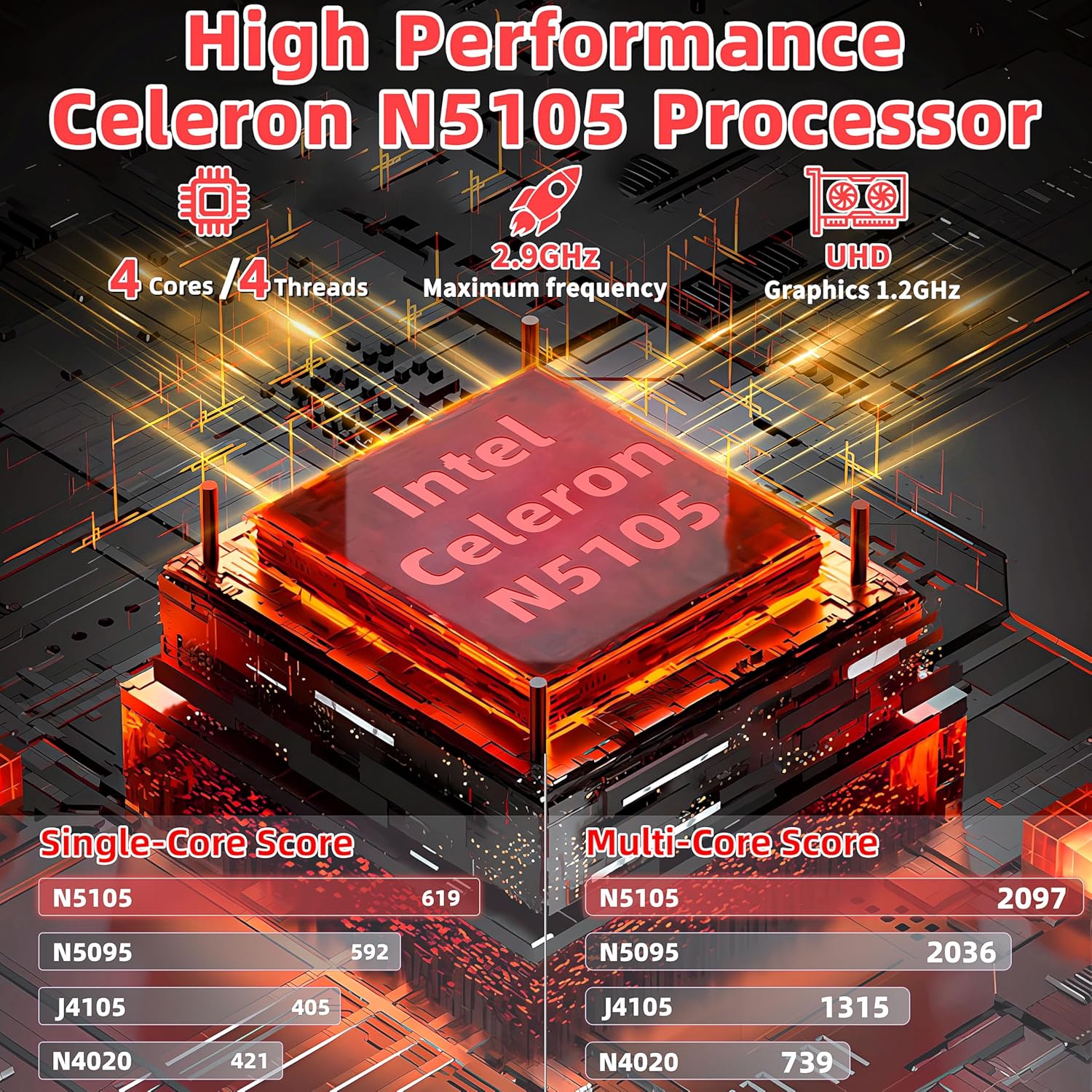 【𝐔𝐧𝐥𝐞𝐚𝐬𝐡 𝐏𝐨𝐰𝐞𝐫 𝐚𝐧𝐝 𝐏𝐞𝐫𝐟𝐨𝐫𝐦𝐚𝐧𝐜𝐞 𝐰𝐢𝐭𝐡 𝐍𝟓𝟏𝟎𝟓 𝐏𝐫𝐨𝐜𝐞𝐬𝐬𝐨𝐫! 】Experience responsiveness like never before with the Intel Celeron N5105 CPU, a powerhouse with 4 cores and 4 threads, boasting a main frequency of 2.0GHz (turbo frequency up to 2.9GHz). Diverse Computing: Effortlessly handles tasks from web browsing to office applications, ensuring smooth device operation. Integrated UHD Graphics: Elevate visuals with Intel UHD graphics, bringing every detail to life for multimedia and streaming. Power-Efficient: Remarkable efficiency without compromising performance, whether for work or entertainment.