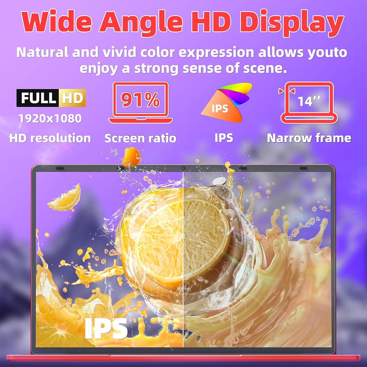 【𝐄𝐥𝐞𝐯𝐚𝐭𝐞 𝐕𝐢𝐬𝐮𝐚𝐥𝐬 𝐰𝐢𝐭𝐡 𝐅𝐇𝐃 𝐈𝐏𝐒 𝐒𝐜𝐫𝐞𝐞𝐧! 】 Immersive Detail: Immerse in a 1920 x 1080 visual masterpiece, perfect for graphic designers and photographers seeking crystal-clear precision. Vivid Color Brilliance: IPS technology guarantees vibrant, true-to-life colors from any angle.Ideal for content creators who demand stunning vibrancy. Cinematic Experience: Enjoy fluid animations and videos for an immersive visual treat. Perfect for movie enthusiasts and gamers craving cinematic quality. Whether in creative design, office tasks, or movie nights, the 14-inch FHD IPS screen adapts to professionals, creatives, and entertainment enthusiasts alike.