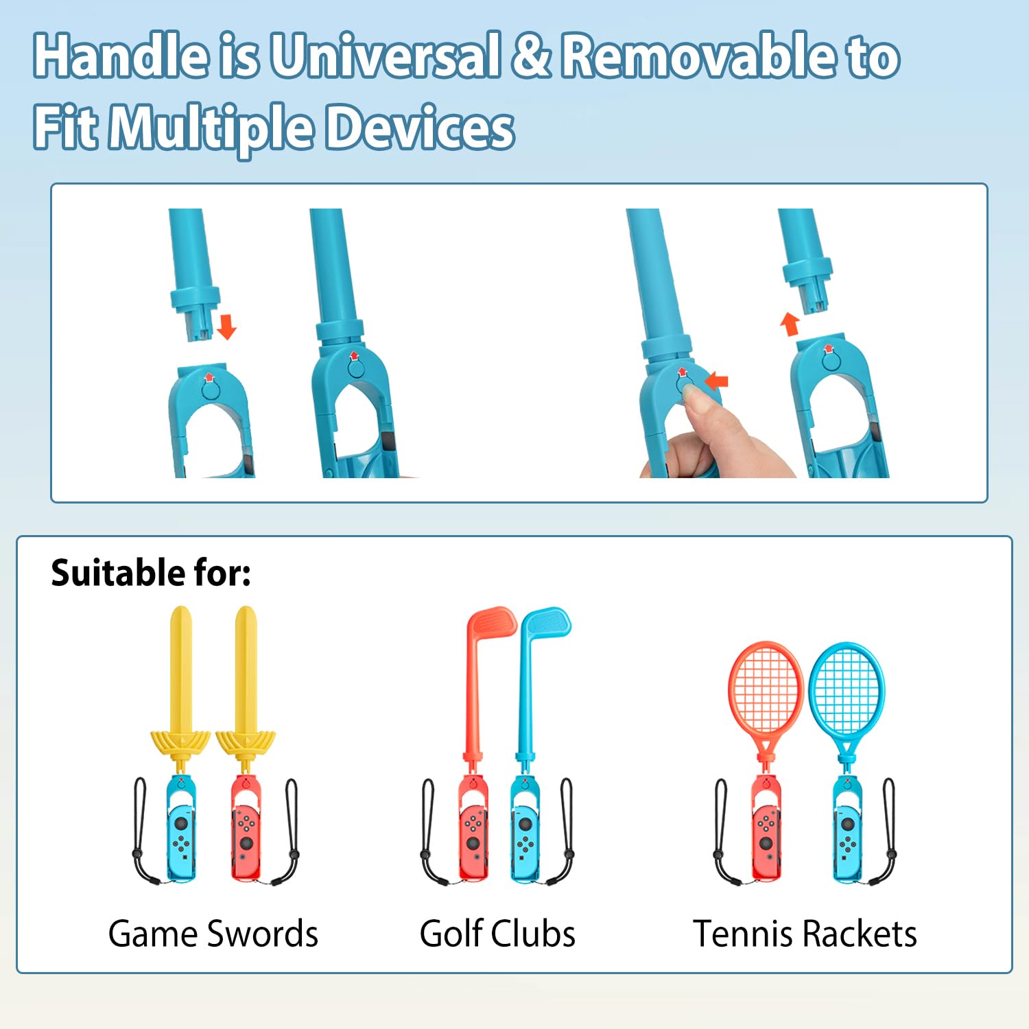 Easy to Install & Remove: Simply connect the Joy-Con to these devices and play without signal delays or interference, conveniently and safely. Tennis rackets, golf clubs, swords and boxing grips are all equipped with a cord to prevent accidental dropping of the grip. All rackets/swords can be controlled by the Joy-Con R/L, ZR/ZL, SR/SL buttons, making the games more realistic and providing a real sports experience.