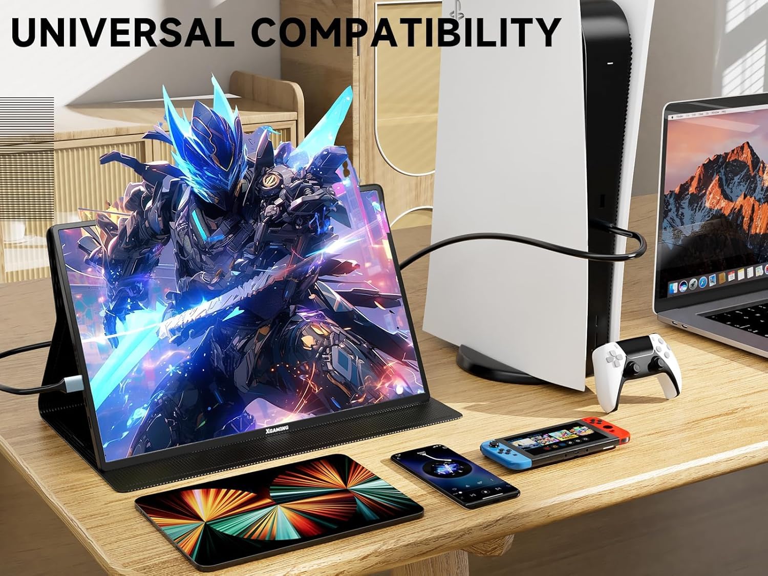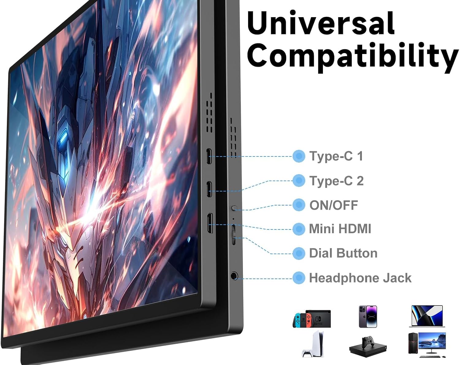 [Extensive Compatibility] 16” portable monitor for laptop features 2 USB-C ports and 1 Mini HDMI port.Easy to access your favorite devices with just USB C or Mini HDMI cable.Compatible with Laptop,smartphone,PS4/PS5,XBox and Switch game consoles.