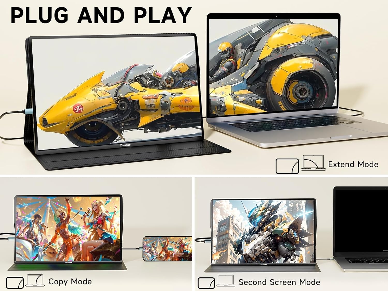 [Powerfull Different Display Modes] The monitor for laptop supports 3 display modes: Copy Mode,Extended Mode,Second Screen Mode. XGaming small monitor can be used as main screen for games,share the screen in meetings at Copy Mode,improve work efficiency at Extended Mode. Adjust screen mode for perfect viewing experiences in browsing,editing or watching.