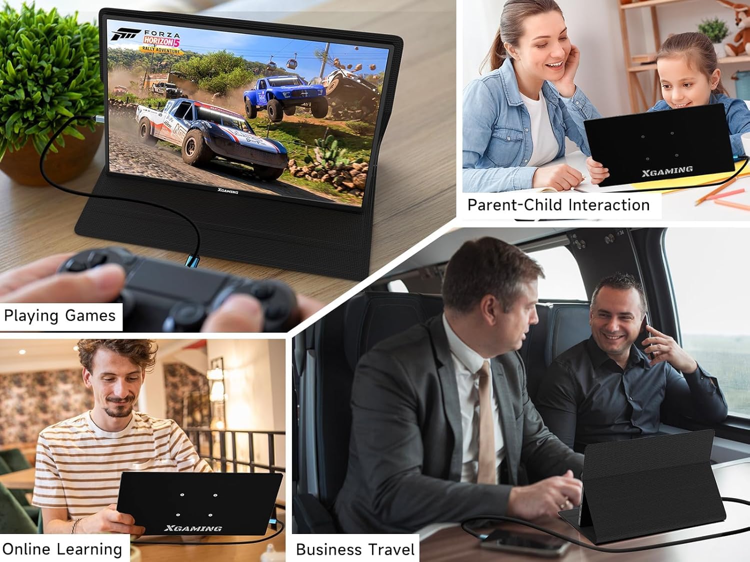 [Ultra-Slim and Lightweight] 16 inch USB C travel monitor is made of 0.35 inch ultra slim frame,only1.6lb unit weight.It comes with adjustable protective leather stand case,suitable for travel,play outside or anywhere when you need it as an laptop monitor.It truly portable computer monitors for travelers,students,players,engineers.