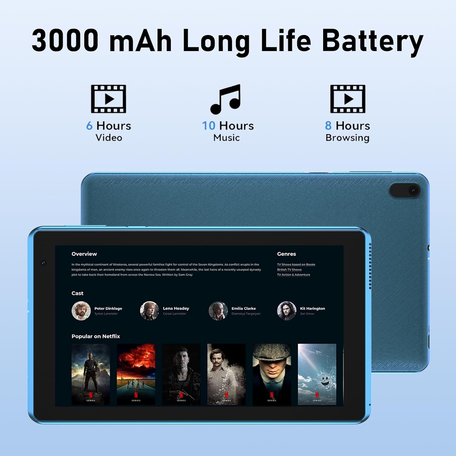 【New Android 12 Tablet 】 This tablet equipped with the latest Android 12. Powerful quad-core processor. Run smoother when open apps and loading the pages. 4GB RAM (2GB fixed memory, 2GB virtual memory) and 32GB ROM and Supports Micro SD card expand up to 512GB. so that you can storage more photos and videos. Tablet passed the GMS certification, You can download more apps from Google play. This tablet support widevine L1, Netflix.