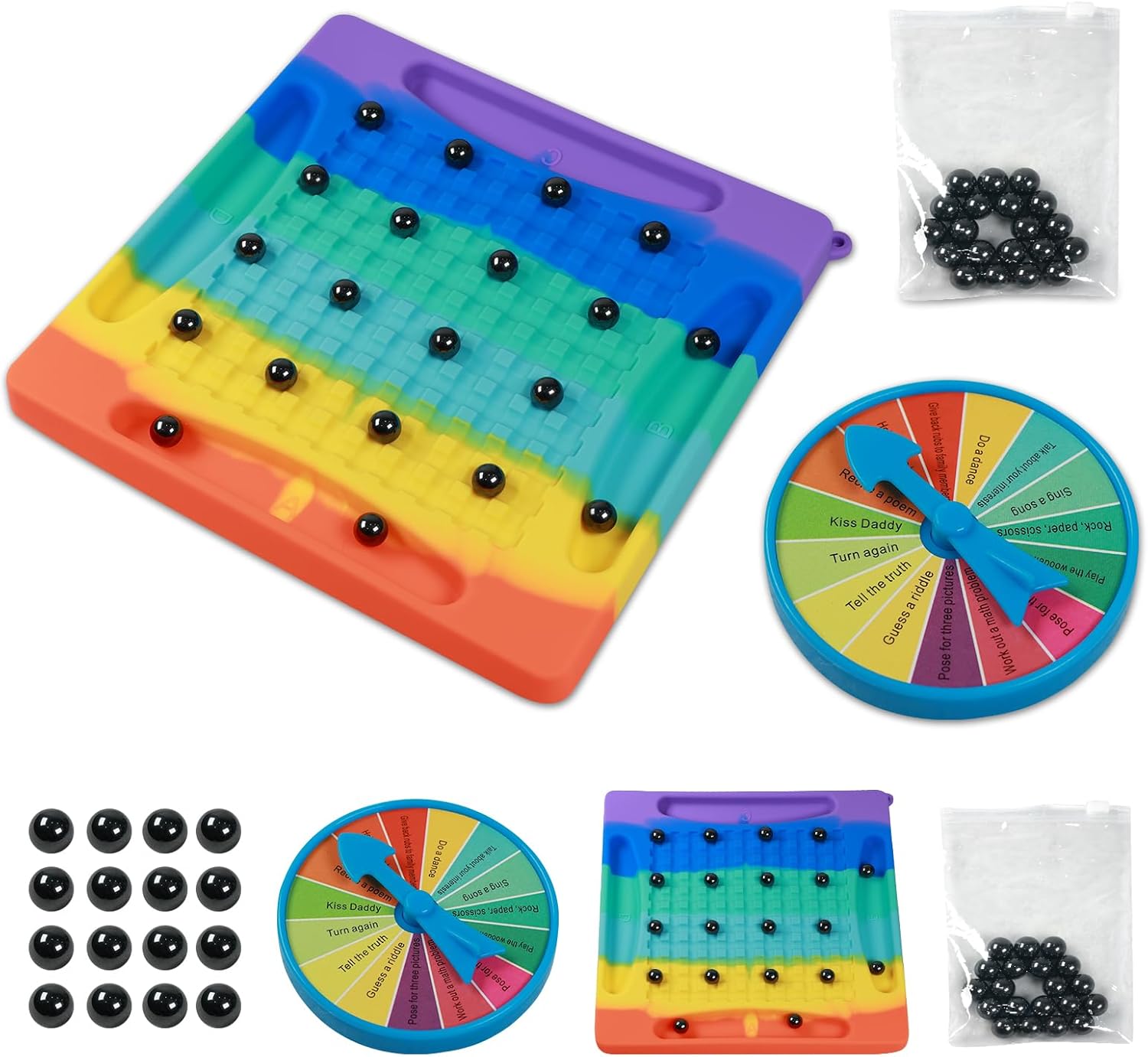 【Easy-to-play Dynamics】With 24 magnetic chess pieces, this game is suitable for 2 or more players. The objective is simple – emerge victorious by depleting your magnetic pieces. The set’s strong magnetic magnets prevent easy piece detachment, ensuring a hassle-free and enjoyable gaming experience,After losing the game, turn the penalty wheel to choose the penalty item.