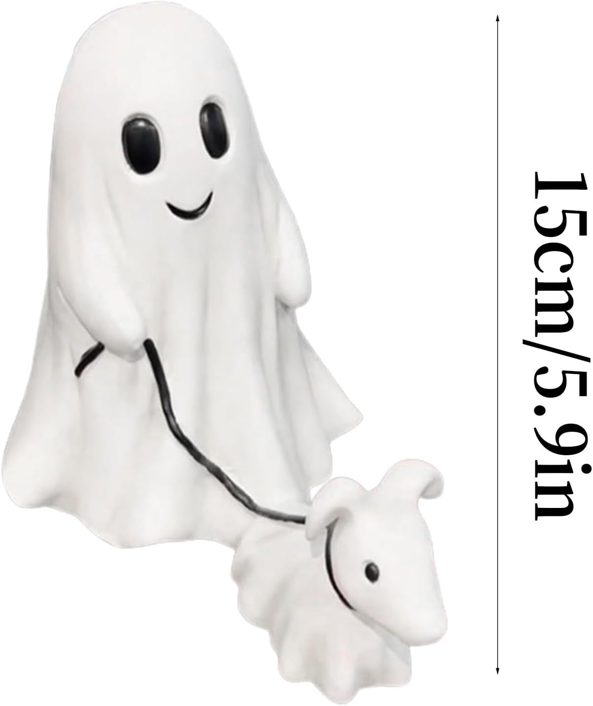 Halloween Ghost Dog Walking Decoration: Size: 17x15x12cm,The Ghost Dog Walking Statue features a cute ghost dog, carefully handmade, and pays attention to details. Its combination of cuteness and horror makes it a charming addition to any Halloween themed decoration, perfect for rural, farmhouse or cottage style corners, bookshelves or displays, and a must-have for your home this holiday.