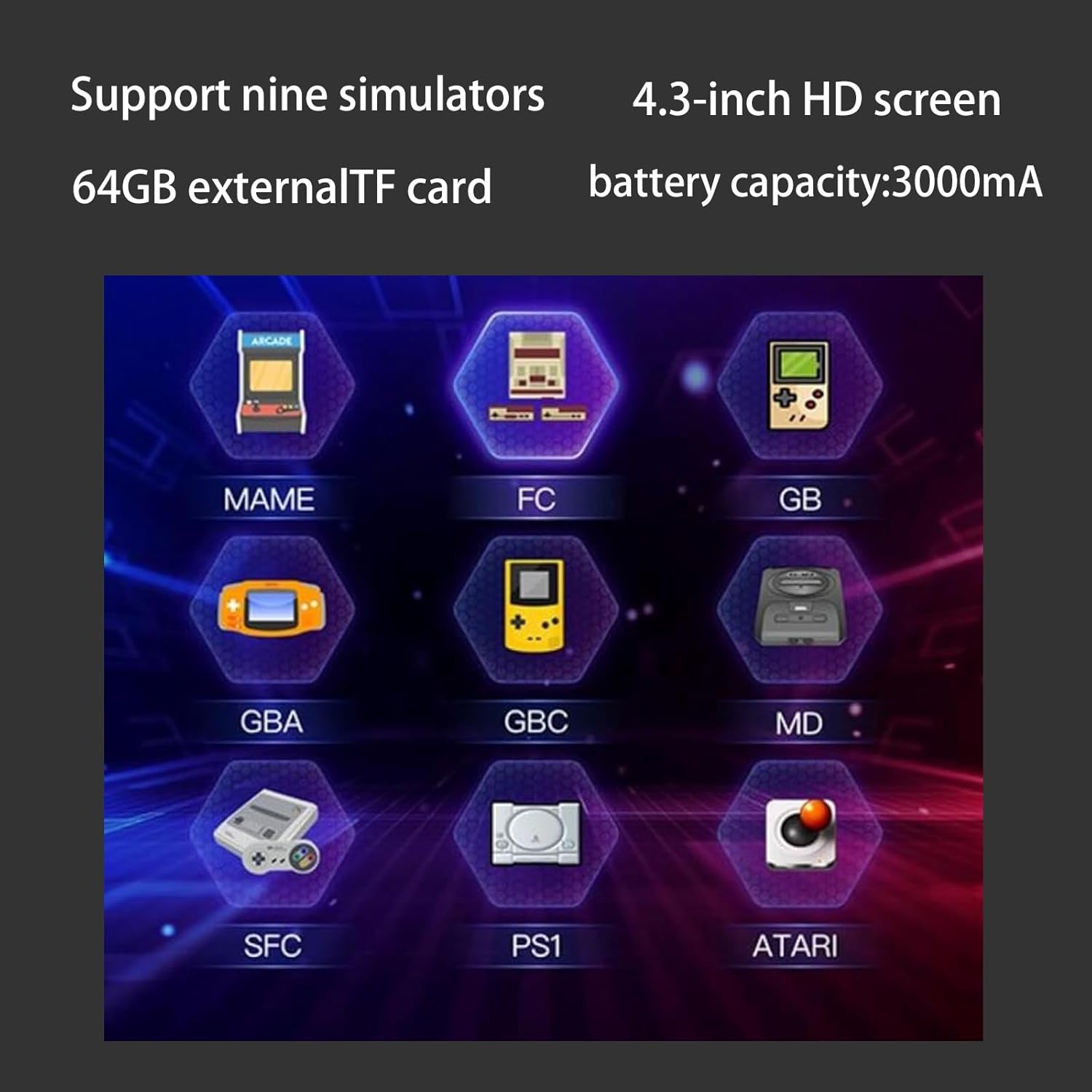 Long Battery Life: Q3 gaming console is equipped with a3000mAh polymer lithium-ion battery that provides up to 4 hours of continuous gameplay. Spend more time playing and less time worrying about recharging