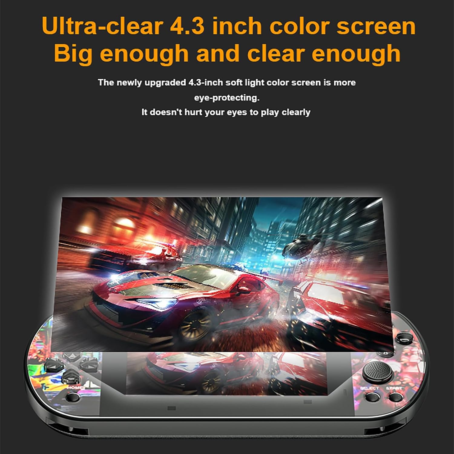 Our retro gaming handheld boasts a 4.3-inch HD screen displaying 720P resolution, offering a visually delightful gaming experience that’s 1-2 times sharper than typical arcade machines on the market.