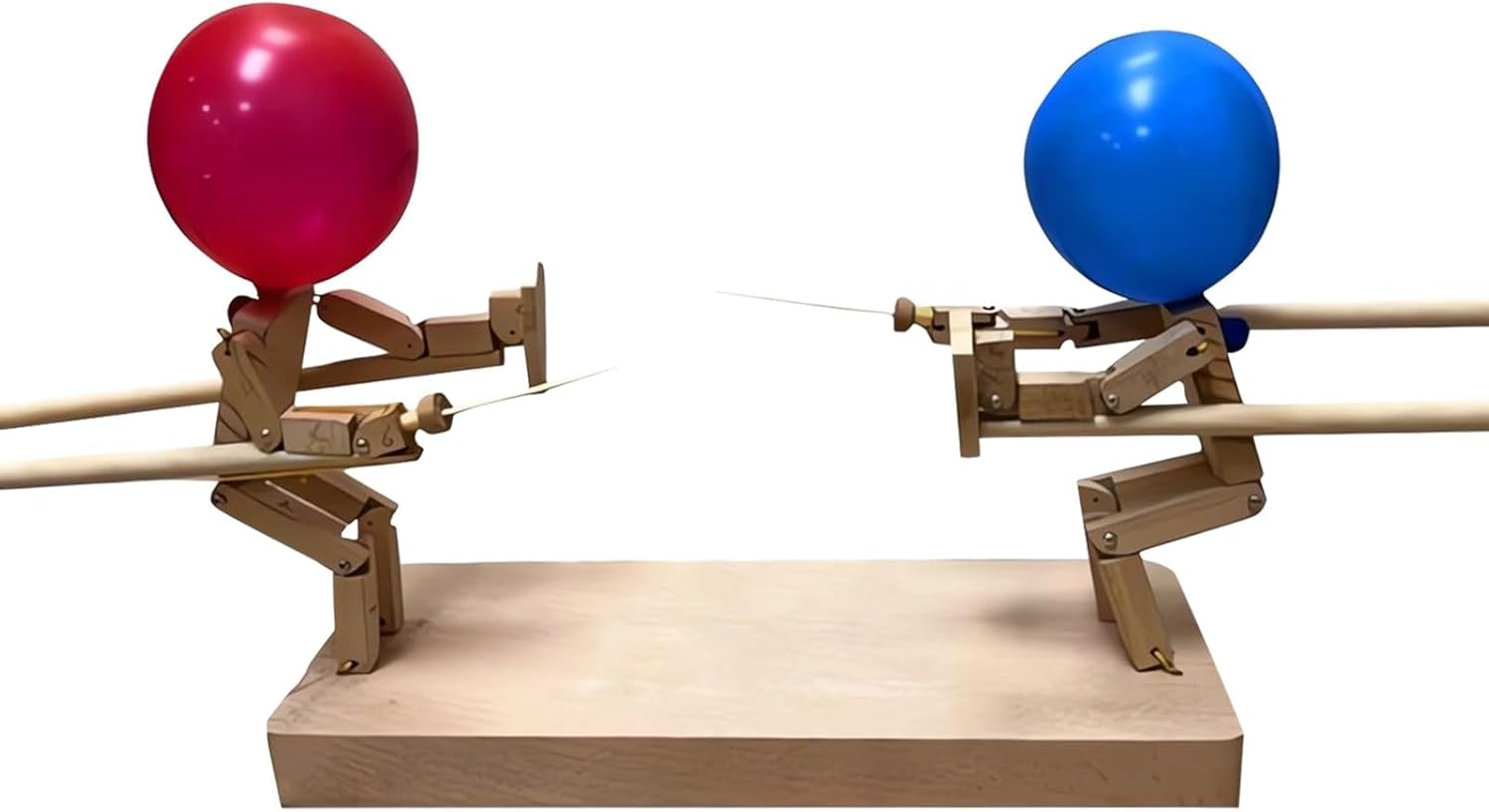 ✅ [Elevate your game night]:This “balloons Xylem Man combatants” – an innovative and fast-paced wooden robot fighting game for two players. in thrilling duels with handcrafted, beautifully designed wooden fencing puppets for an unrivaled balloons fight.