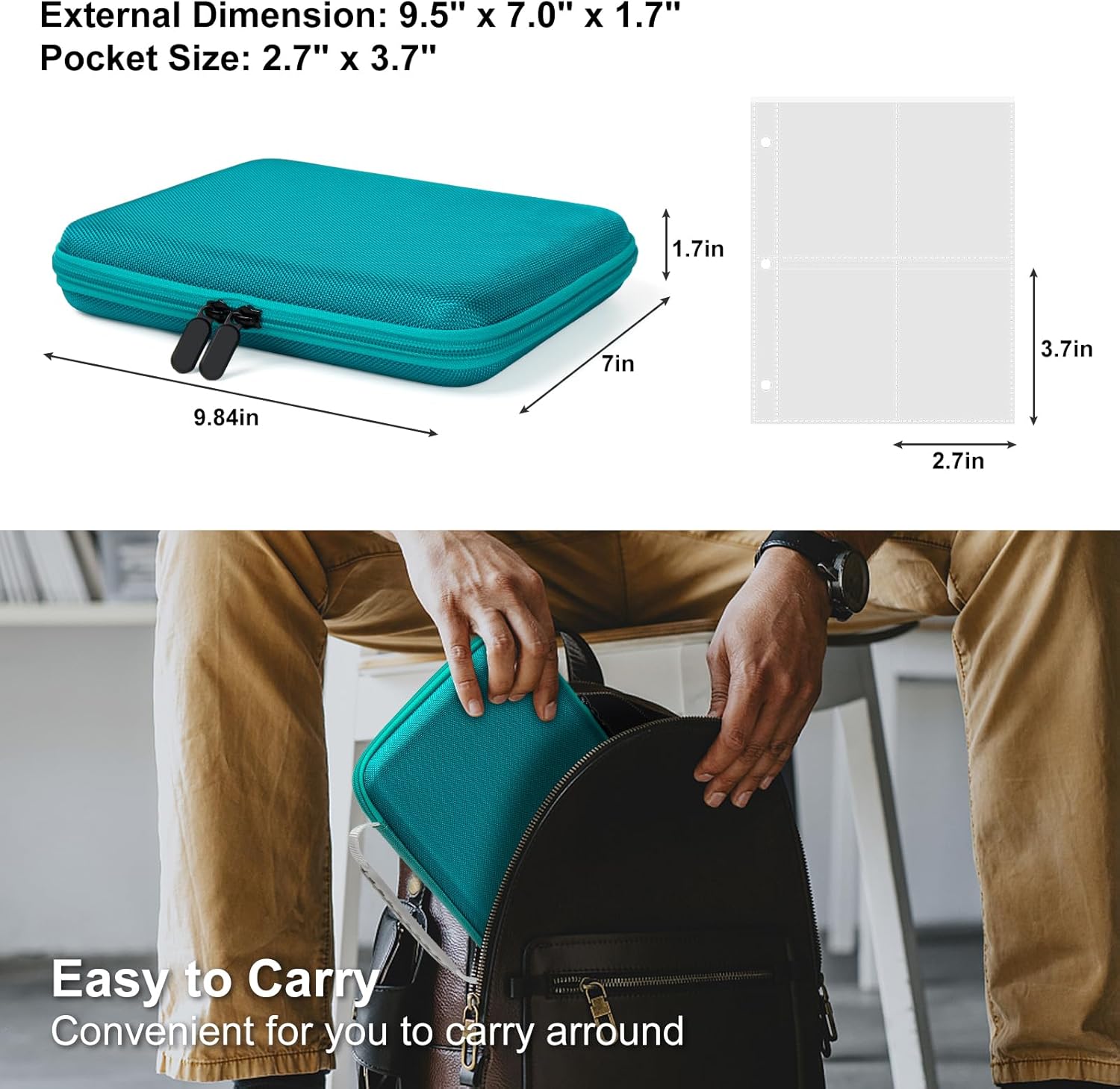 Superior Protection – Our Upgrade card binder is made of premium thickened EVA material, soft lining, and waterproof 1680D nylon fabric. It is stronger, more durable, and provides better protection than PU card binders. The EVA card binder can always maintain its original shape to ensure that the trading cards inside will not be crushed or deformed. This waterproof card binder with a sturdy zipper offers maximum security and reliable durability for your trading cards.