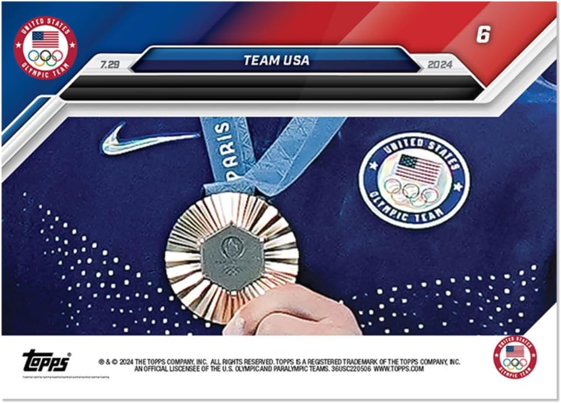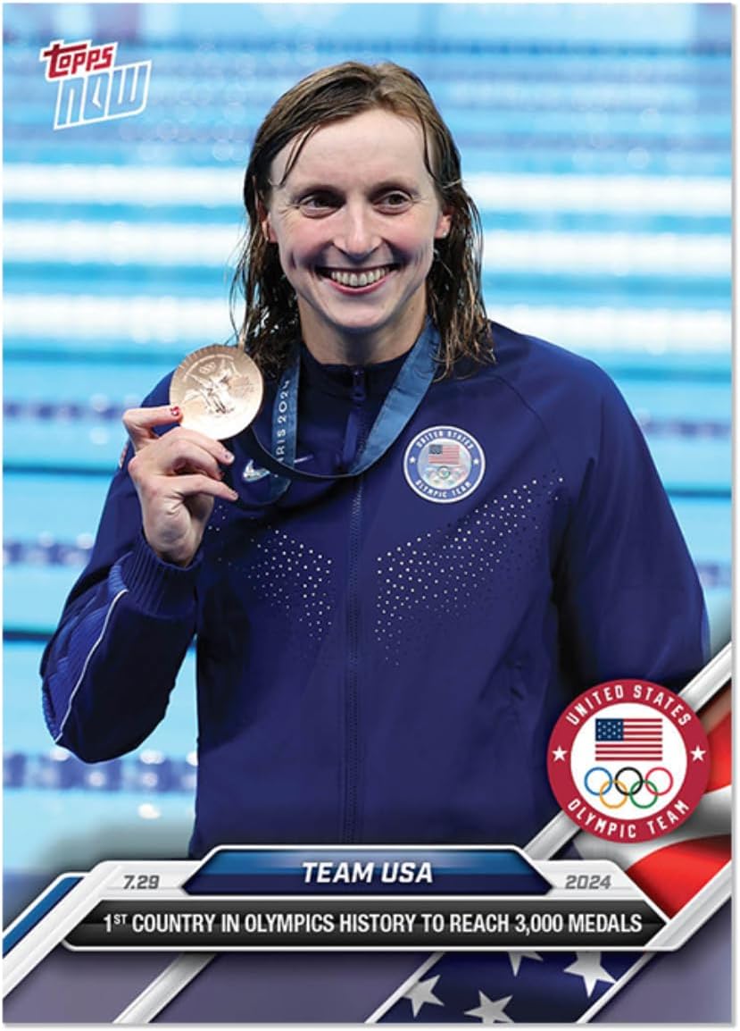 2024 Olympic Games T Now Team USA-# 6 Katie Ledecky- 1st Country in Olympics History to Reach 3,000 Medals- Swimming- Sports Trading Card-Stated Print Run of Only 1588 Made! Card Shipped in New Protective Screwdown Holder.