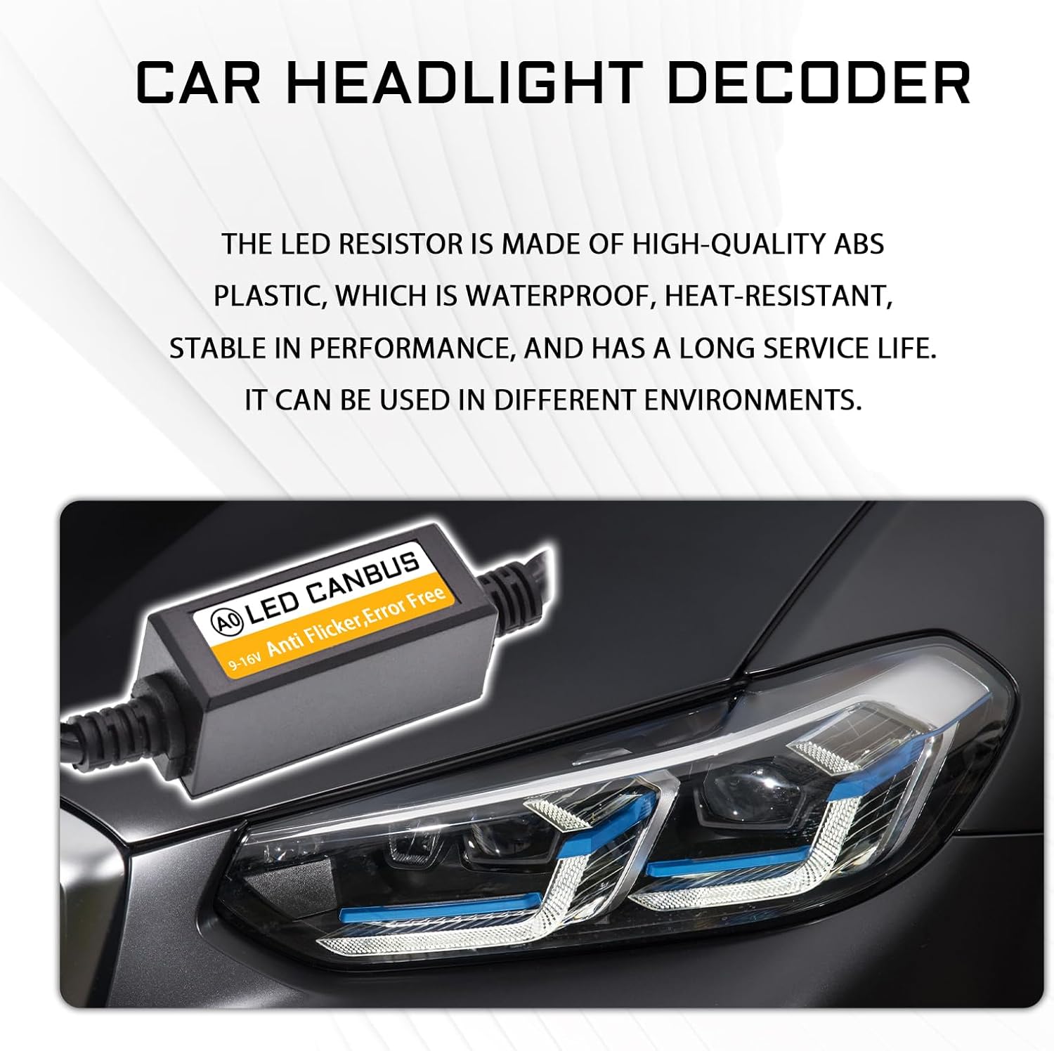 【Package Contents】You will receive 2 LED headlight decoders,Note, do not use on HID lights, this decoder is only suitable for LED car lights.Make sure the metal resistor does not come into contact with the plastic wire to prevent the plastic from melting.