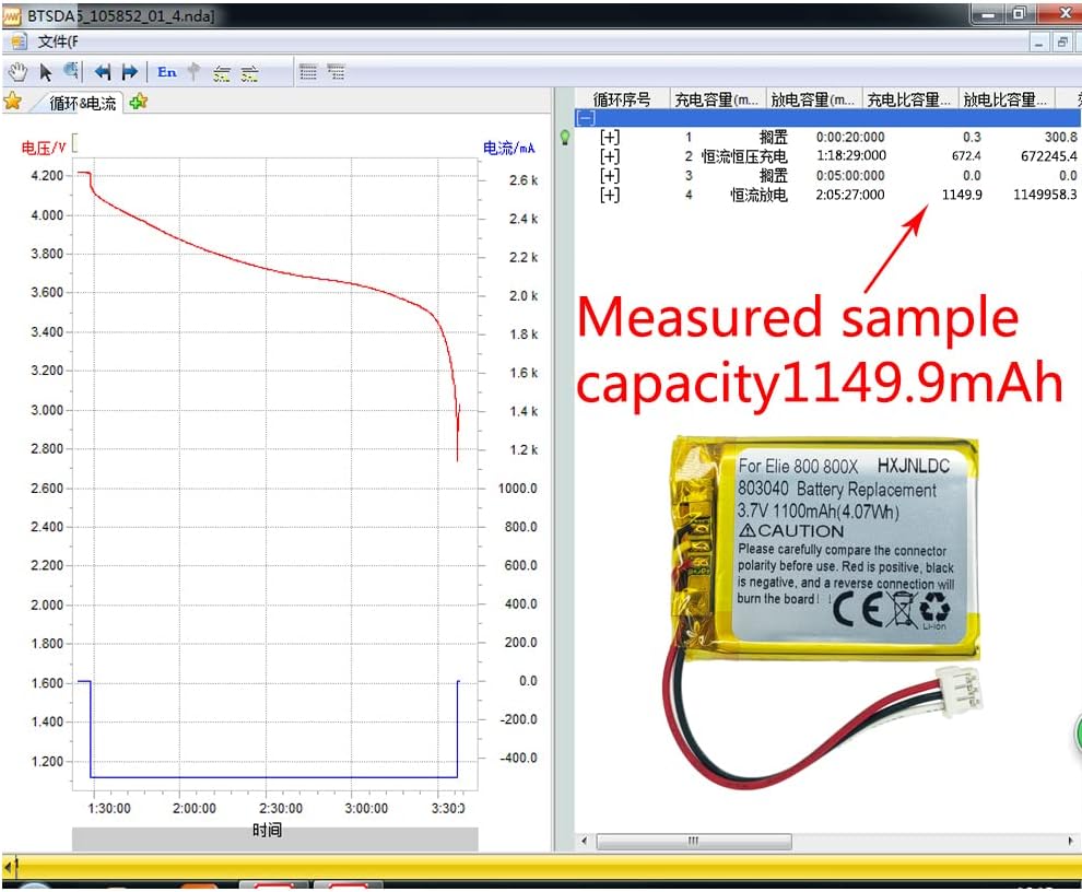 803040 rechargeable lithium ion polymer battery, nominal voltage 3.7V, full charge voltage 4.2V, capacity 1100mAh, power 4.07Wh,★ size 1.614x 1.181 x 0.315(41×30×8mm) (L*W*T), Weight:0.74z(21g),Maximum current:1.1A。 It can prevent overcharge, overdischarge, overcurrent, and short circuit.