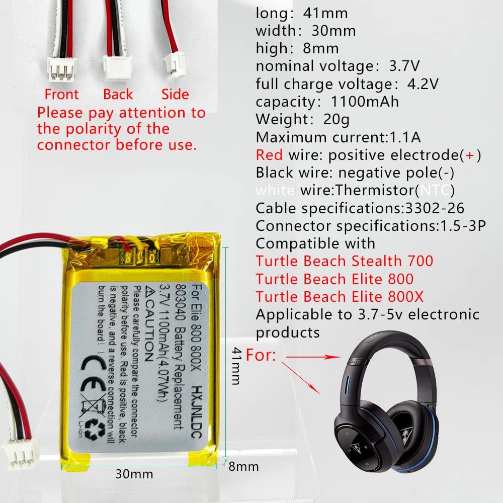 Compatible with Turtle Beach Ear Force Elite 800 Elite 800X Stealth 700 Gen 2 Wireless Surround Sound Gaming Headset Battery Replacement。It can also be used in other 3.7-5V electronic products with power less than 4.07Wh (1100mAh).(★Not suitable for power tools and model aircraft)
