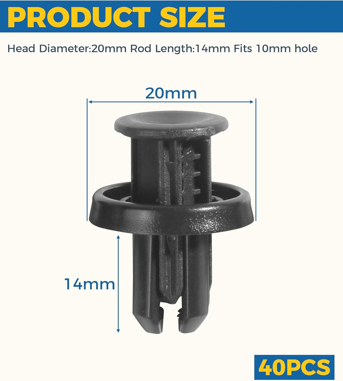 [Size] Car clips top diameter: 20 mm, rod length: 14 mm, suitable for 10 mm holes. It can hold your parts very tightly and will not loosen over time, and can also be easily removed without damage.