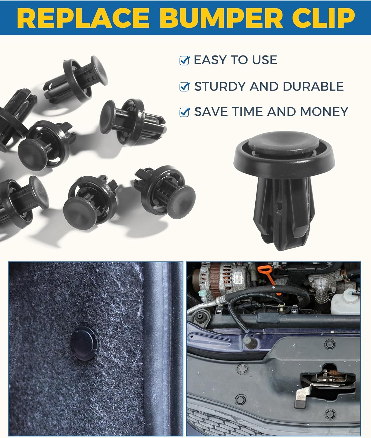 [Push-in Design] Car bumper clips push-in, rivet column pressure expansion legs, fast and firm fixation. Easily fix the front bumper, front fender, front grille. A better alternative to the original bumper and fender clips.