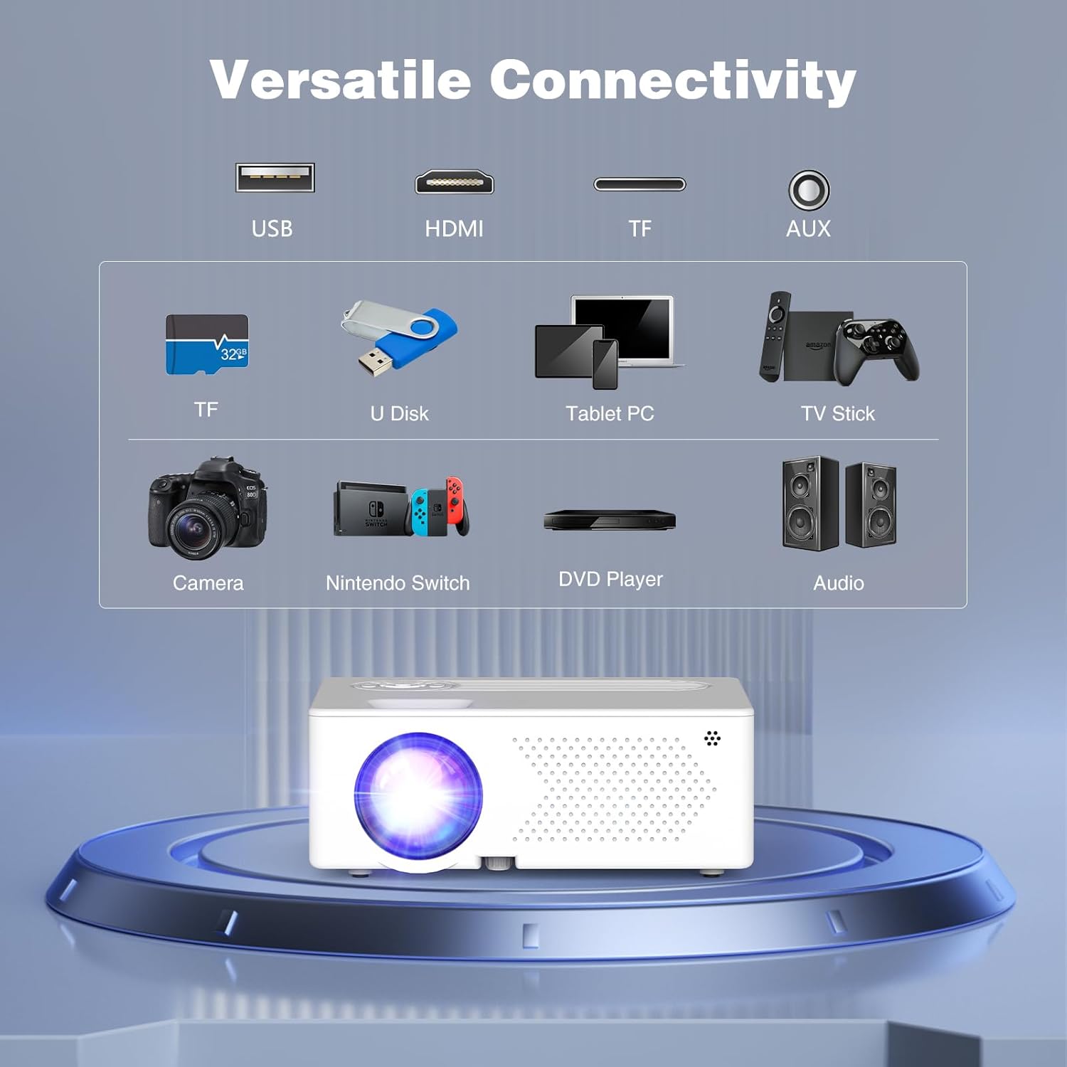 🎬SEAMLESS CONNECTION WITH VARIOUS DEVICES🎬: Featured with USB port, HDMI port, VGA port, AV/AUX as well as TF port, this projector is designed to work with TV Stick, Chrome cast, Smart Phone, Laptop, Tablets, PC and game consoles. Thanks to the user-friendly updates and easy setup, it’s never been more relaxing to explore more happy entertaining time with your family and friends.