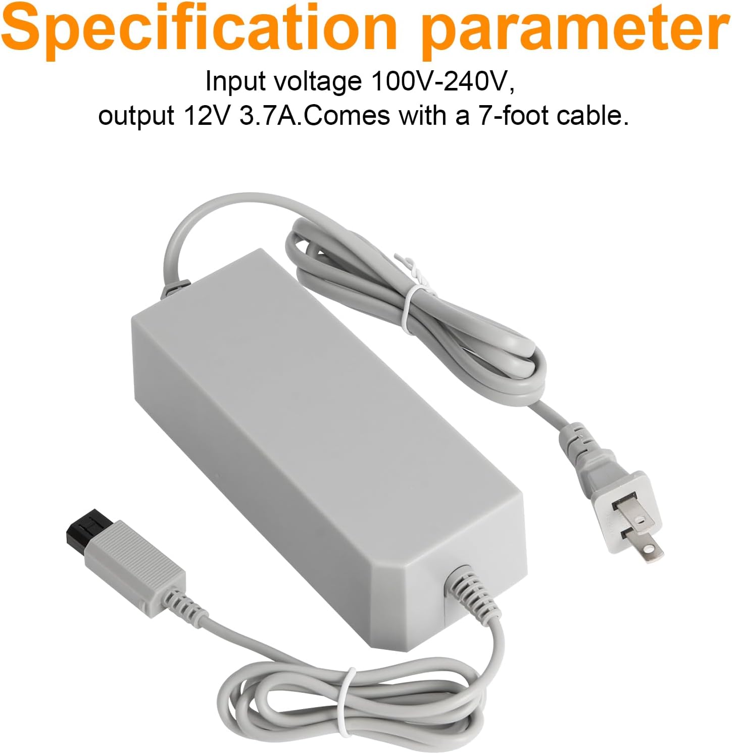 Universal Compatibility: Input voltage 100V-240V, output 12V 3.7A. Comes with a 7-foot cable for easy reach in different rooms. Please note it is specifically for Wii consoles, not compatible with Wii U.