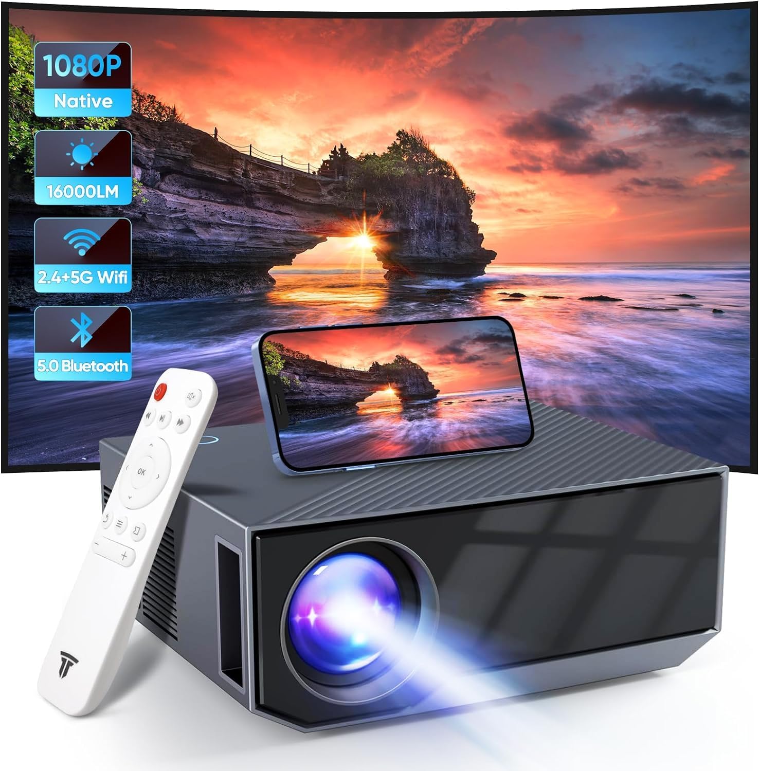 【High-quality Natibe 1080P 4K Supported Projector】 Projector can support 4k resolution via HDMI and 1080P via wireless connection. This projector has 16000 Lumens strong light source, HD lens, 50000 hours long lamp life, adjustable 30-300 inches big projection screen, latest color reproduction technology. Every detail on the screen is accurately restored to ensure a real and color-vibrant viewing effect.