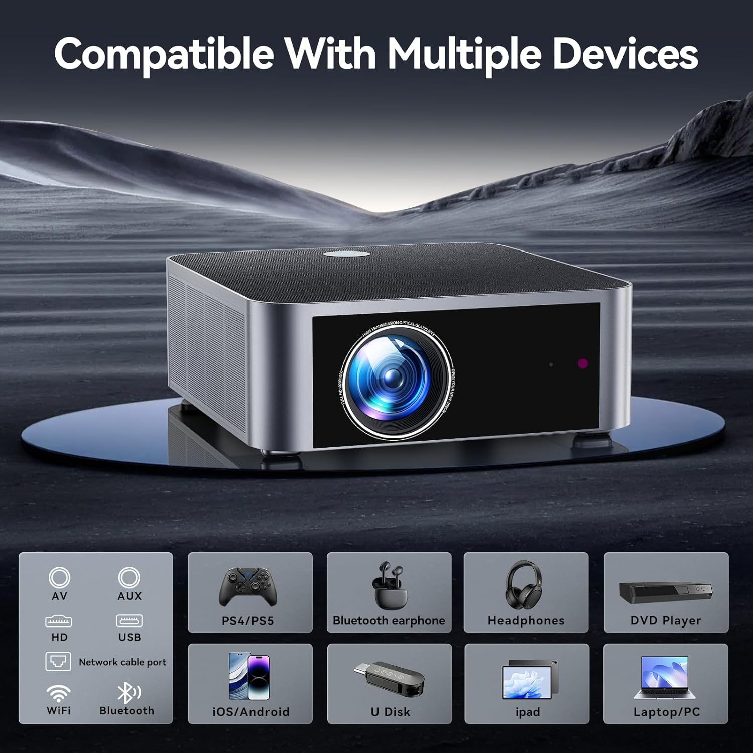 【Advanced WIFI6 Projector】Y3 projector is compatible with 2.4GHz and 5GHz networks, the maximum rate can reach 9.6G bps. You can enjoy three times faster speeds, larger capacity for data transfer and lower latency than 5G network when used with a WiFi 6 router. Besides, The Bluetooth projector has more stable connections, you can say goodbye to delay and stuck. Whether you’re watching movies or playing games on Xbox, PS4/5 or Switch, you can enjoy a smooth viewing and gaming experience!