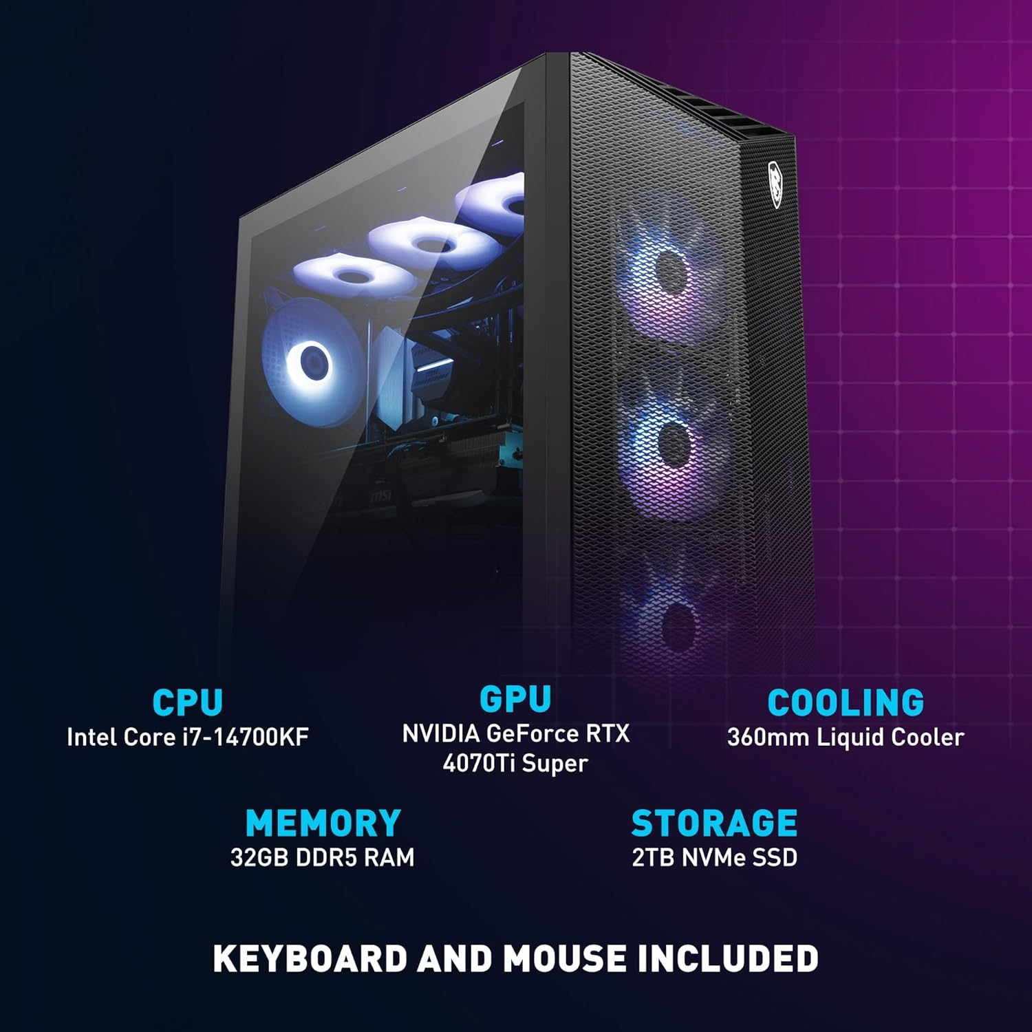 MSI Aegis RS2 Gaming Desktop: Intel Core i7-14700KF, Geforce RTX 4070 Ti Super, 32GB DDR5, 2TB M.2 NVMe SSD, Liquid Cooling, USB type C, VR-Ready, Window 11 Home: C14NUF7-820US