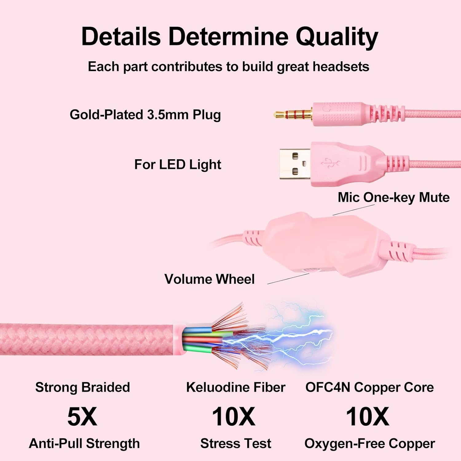 【Surrounding Stereo Subwoofer】 Gaming headset with high power 50mm neodymium magnet drivers, greatly enhance the expressiveness and sense of depth of voice playback details, powerful sound quality provide you immersive gaming experience.