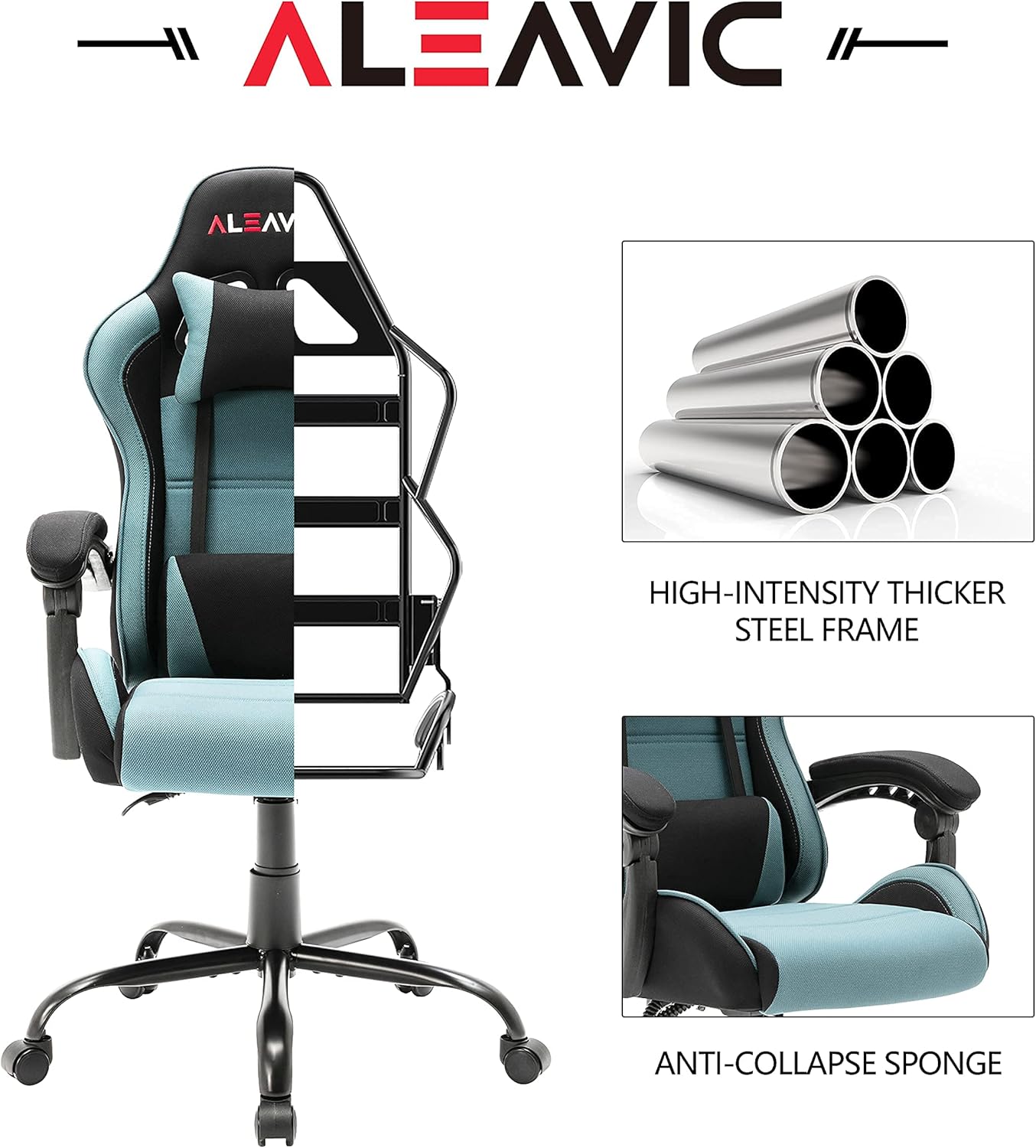 ALEAVIC Gaming Chair for Adults, High Back Ergonomic Computer Gaming Chair with Headrest and Lumbar Support, Black Blue