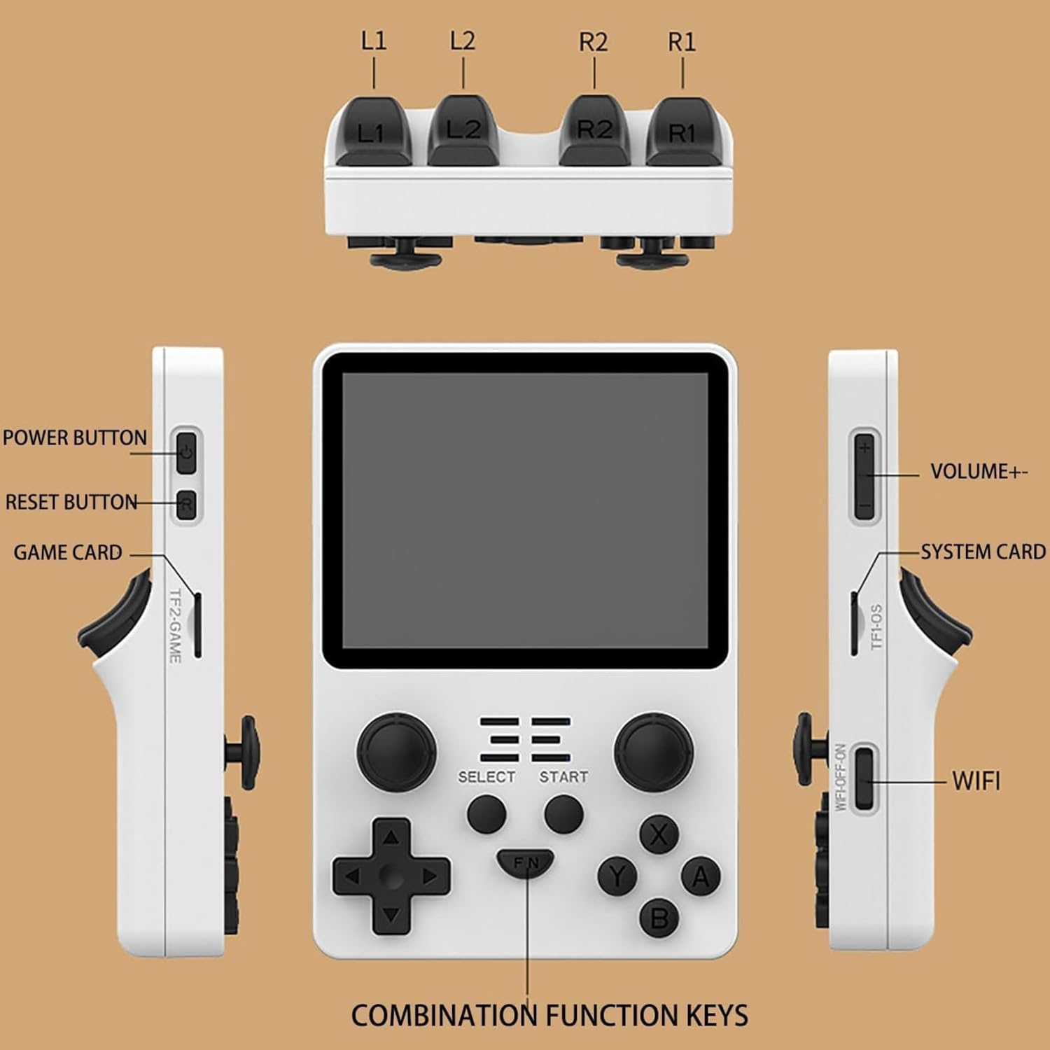 【Super Quality】Designed for On-the-Go Adventure, the Handheld Console is Compact and Feather-Light. Toss It Into Your Pocket or Bag, Unleashing the Magic of Gaming Anytime, Anywhere.The battery life is super long and can be played for a whole afternoon. The super strong material ensures the longevity of the button. If there is a problem with the button, we provide free replacement service.