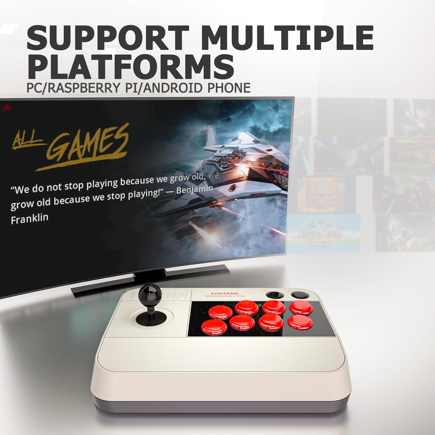 【Joystick Game Console】🕹️This arcade game console does not need to be downloaded, the game is pre-installed in the TF card, it can be connected to your display screen (TV, computer screen, projector) out of the box, 4GB RAM+32GB ROM, USB3.0, support external USB gamepad to play 2-player games ,save it at any time Game progress