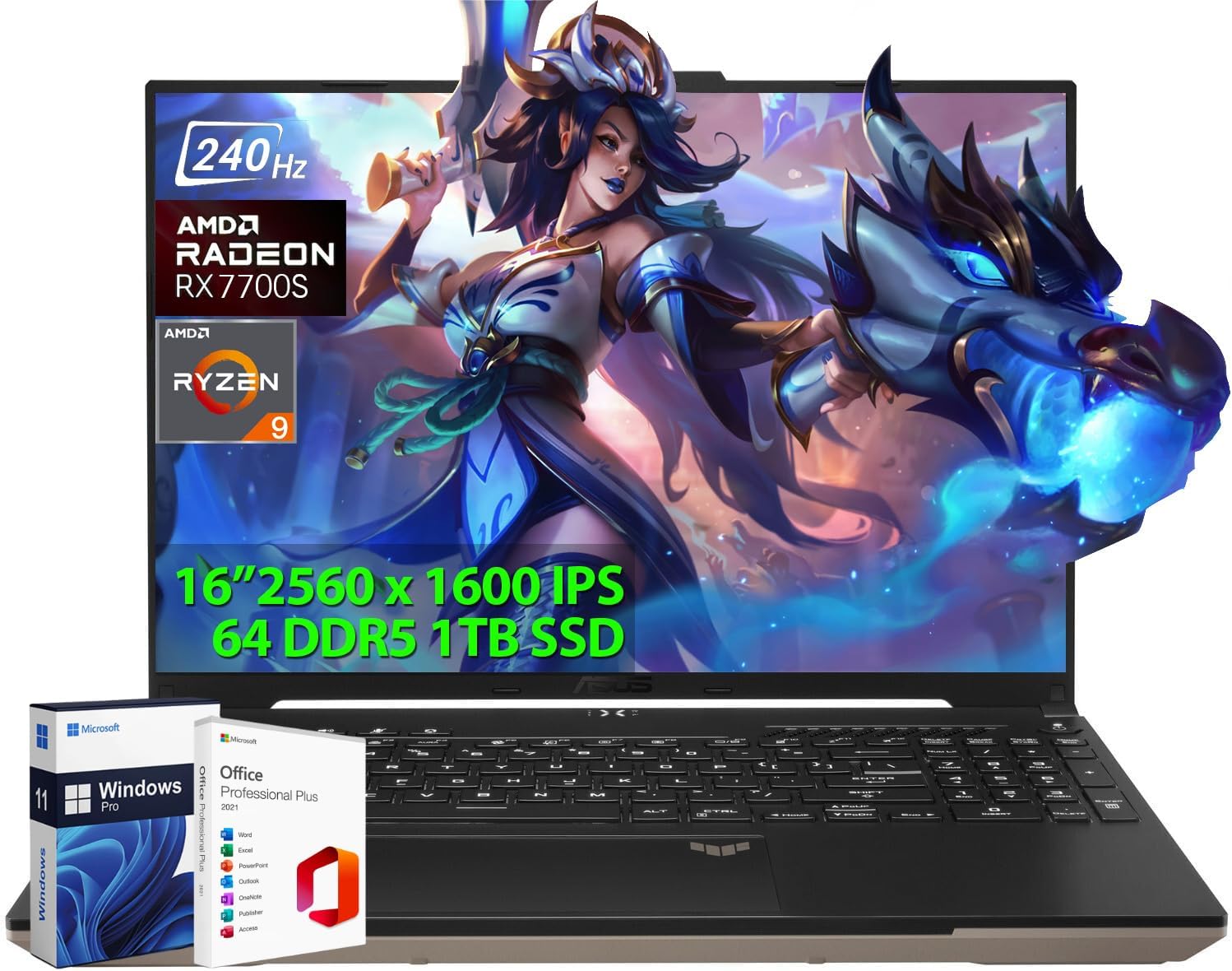 【16″ 240Hz QHD+ Display】The 240Hz QHD+ 2560 x 1600 display features adaptive sync to minimize screen tearing, while playing your favorite games, and gives you plenty of toolbar and tab space.AMD Radeon RX 7700S for an ultrafast GPU to fuel your games. High-end version of the game is also easy to control, high-definition display brings you an immersive experience.