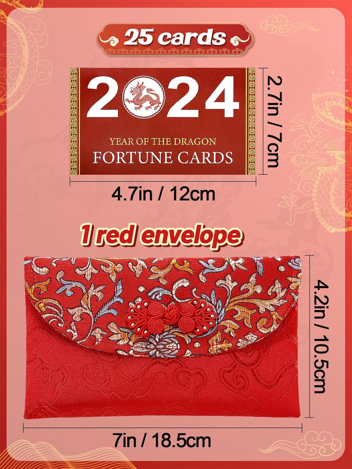 Package Included: You will receive 1 satin fabric red envelope with 25 scratch off fortune cards in it. the quantity is sufficient for you to share it with your family and friends and enjoy the fun of scratching the fortune prediction card.