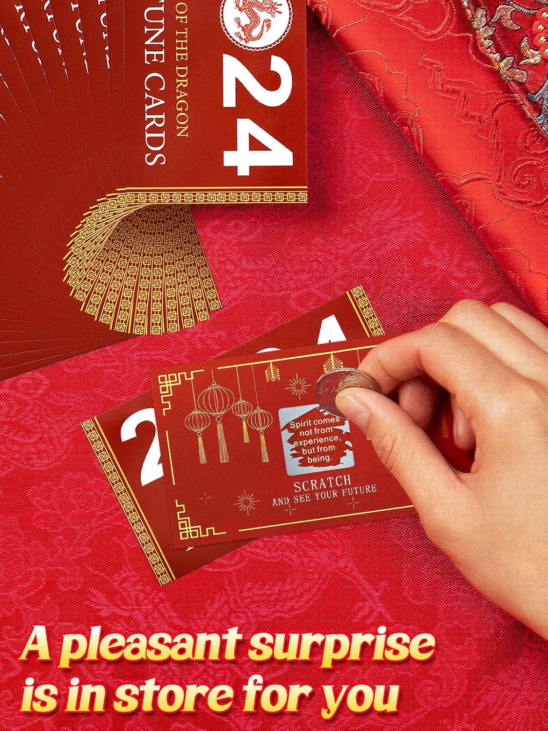 Best Wishes: Red is the lucky color of the Chinese. Our scratch off fortune cards are designed to celebrate the New Year. The 25 cards are designed with different sentences, involving all aspects of life such as wealth, health, love, and success in the year of dragon. These will be the best wish for your new year.