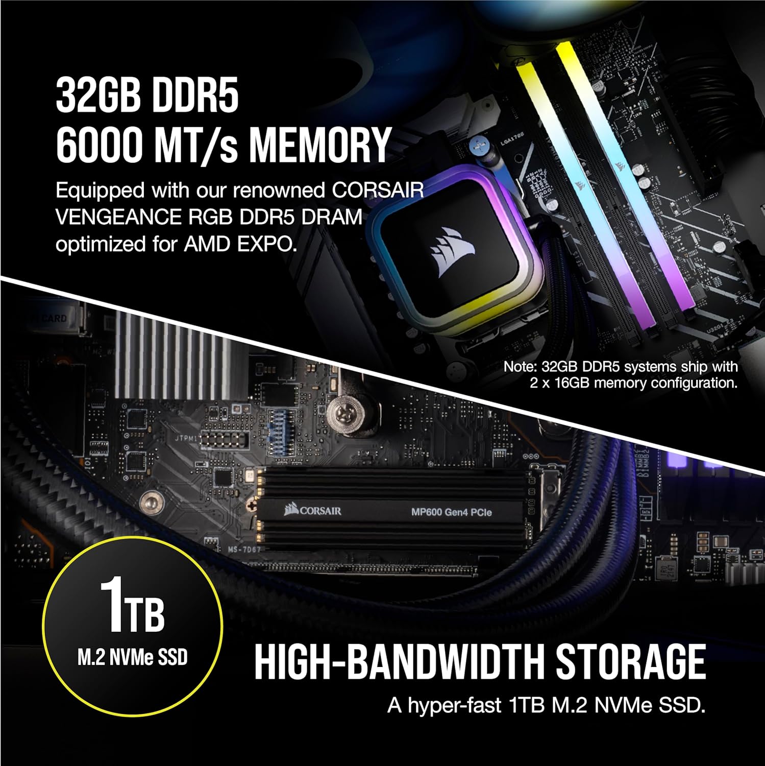 Liquid-Cooled AMD Ryzen 7000 Series CPU: Powers the most demanding games and obliterates multithreaded tasks like 3D or video rendering and software compiling.