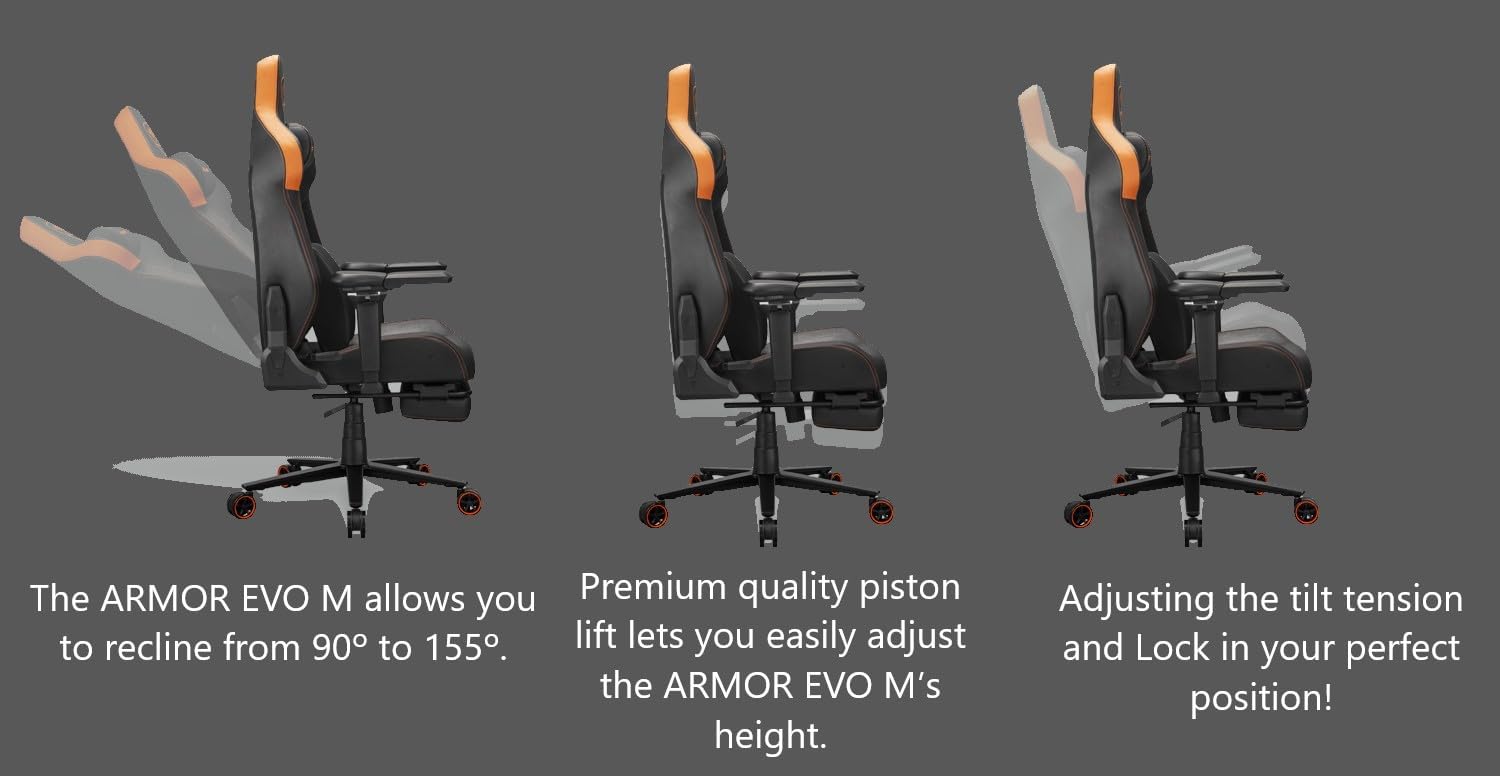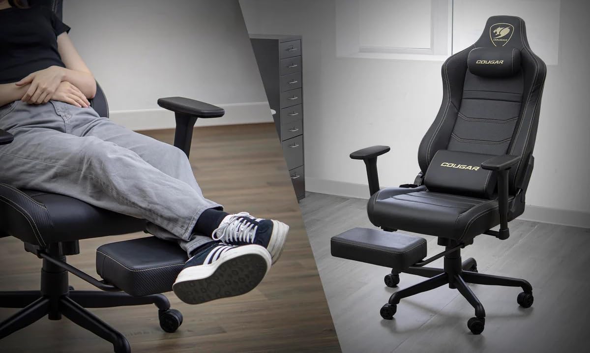 COUGAR Armor EVO S Gaming Chair with Breathable Premium PVC Leather, 3D Adjustable Armrests, Retractable Footrest, Lumbar Cushion, Magnetic Neck Pillow Foam (Gold)