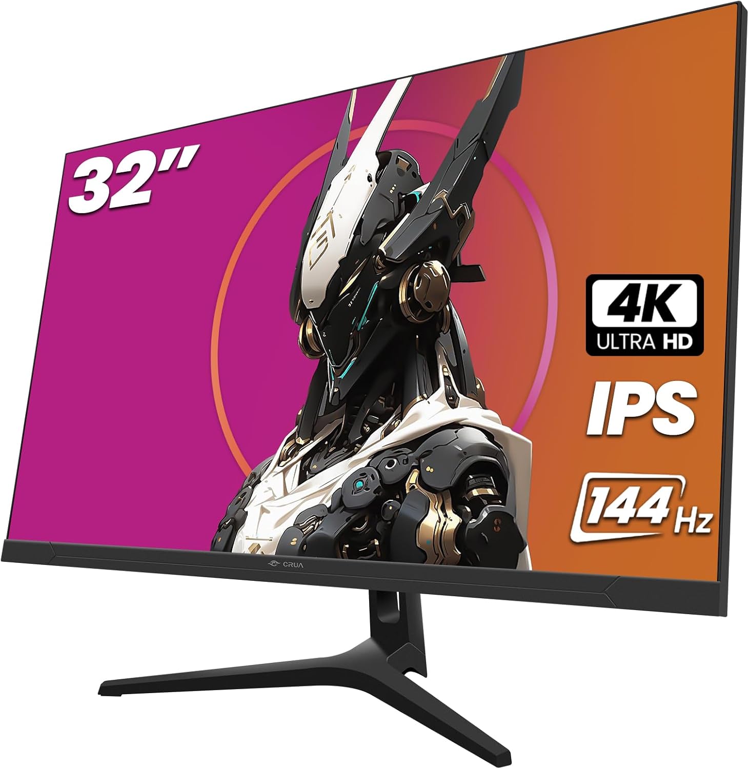 CRUA 32″ Gaming Monitor, IPS UHD(3840 * 2160P) 144Hz Monitors, Computer Monitor Support FreeSync, HDR, DCI-P3 97%, 1.07B Color Depth, with HDMI 2.0/DP 1.4, Support Wall Mount- Black