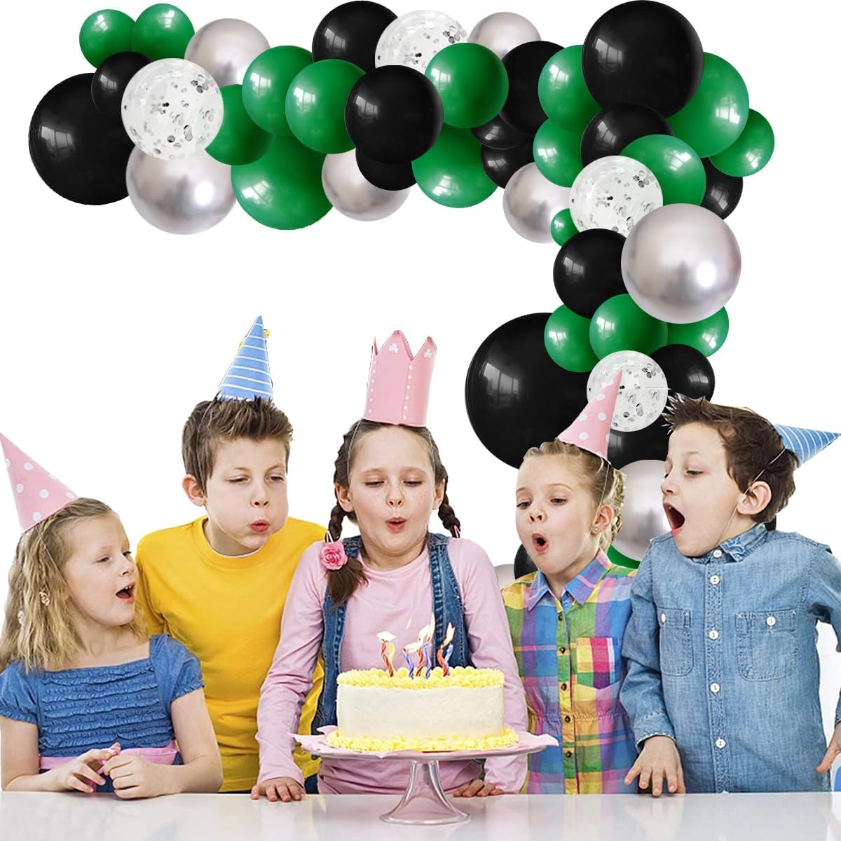 QUALITY YOU CAN ACTUALLY DEPEND ON: The dark green black silver confetti balloon garland arch suit are brightly color, and is made of natural latex balloon, which are thick and strong, and suooort air and helium, when inflating the balloon, please inflaste to less than 85% to avoid over-inflation, causing the balloon to burst, I believe our green black silver video gaming theme party decoration will definitely become the focal of your party!