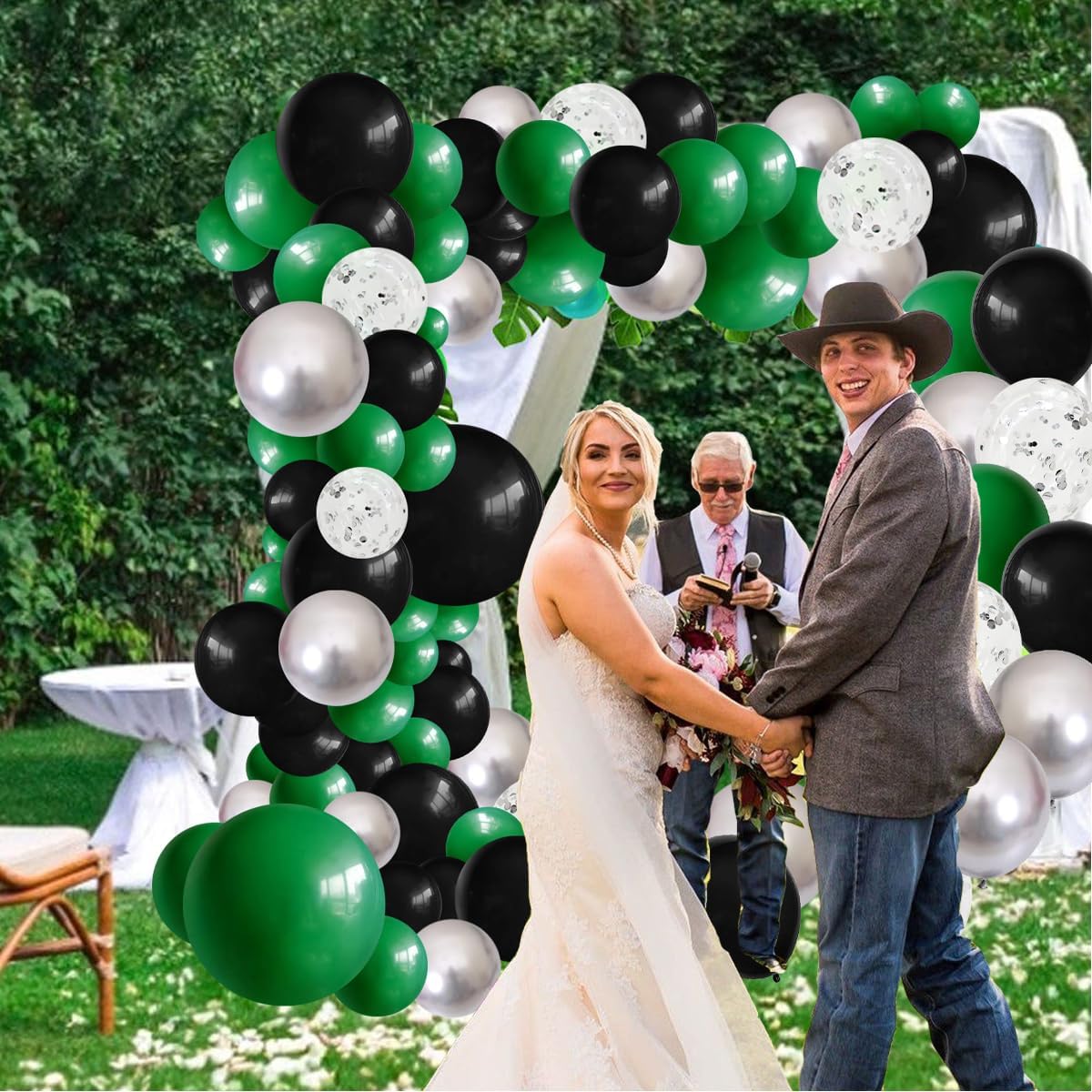 THROW THE MOST AMAZING PARTY: Dark green black and mteallic silver balloon garland for a variety of scenes, suitable for green silver 2024 graduation, video gaming, boys men 21th 30th 40th 50th 60th 70th birthday, wedding, dinosaur theme party, animal party, tropical jungle party, baby showers, graduation ceremonies, lawn music party, etc. any type of theme party is full of vitality, full of joy, and leave beautiful memories!