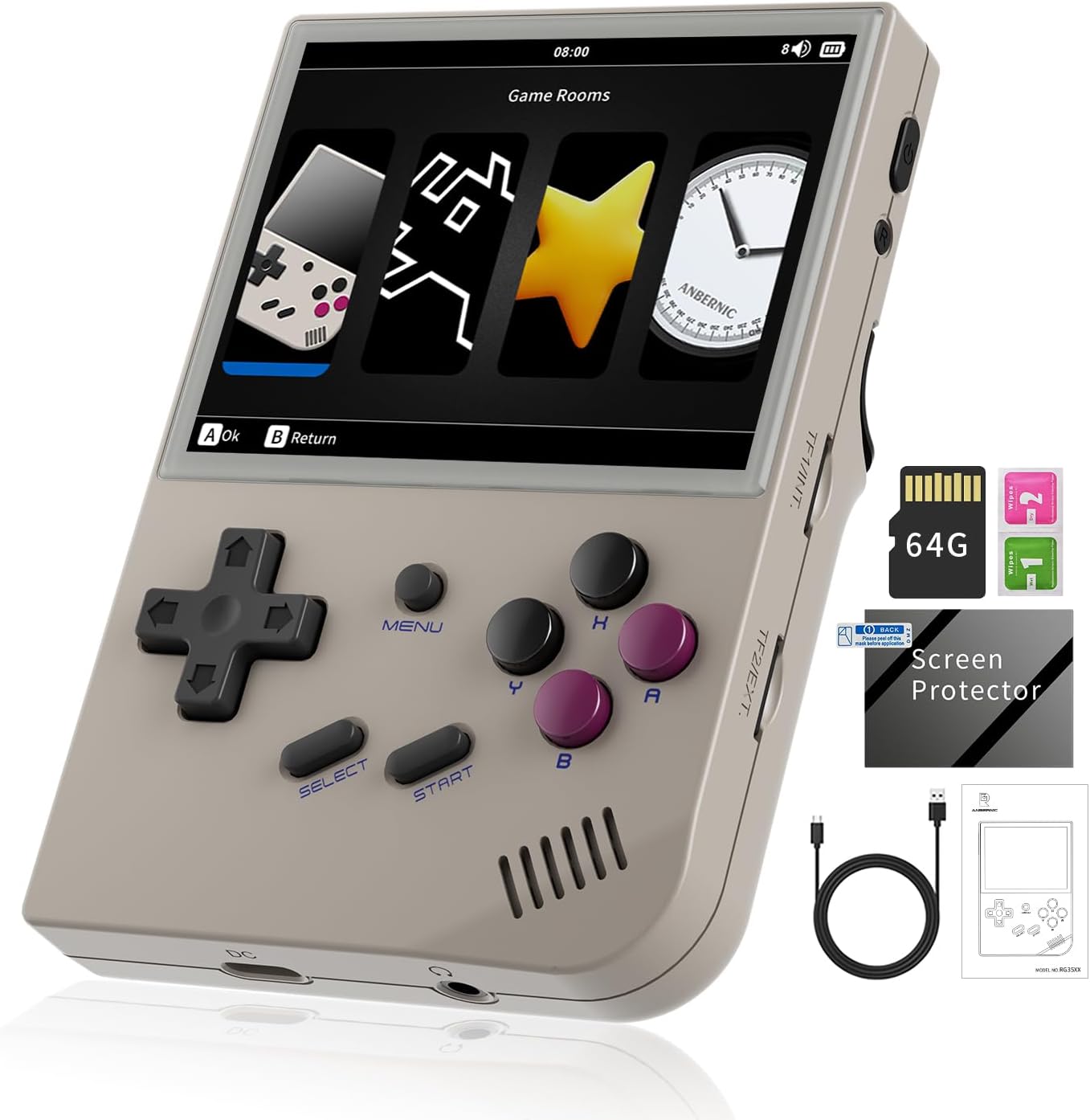 【Clear Bright IPS Screen】: 3.5-inch display and 640×480 resolution, you can see more details and beautiful scenes in the game.Tempered glass, double protection with scratch proof and anti-fall, brings exciting gaming experience and better eye protection.