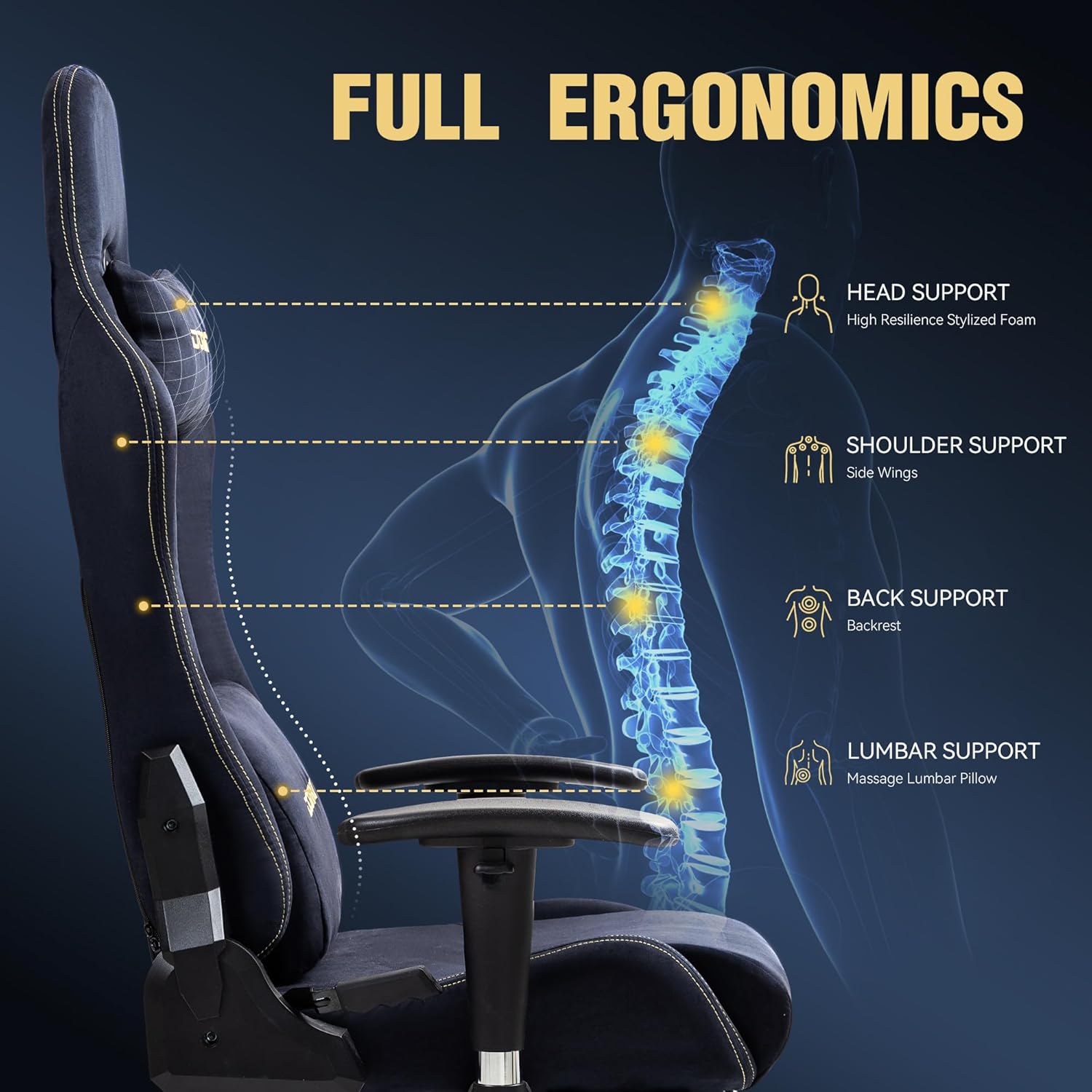 Dowinx Gaming Chair with Massage Lumbar Support, Suede Fabric Ergonomic Computer Chair with Footrest for Adults, High Back Reclining Game Chair for Office Gaming, Black