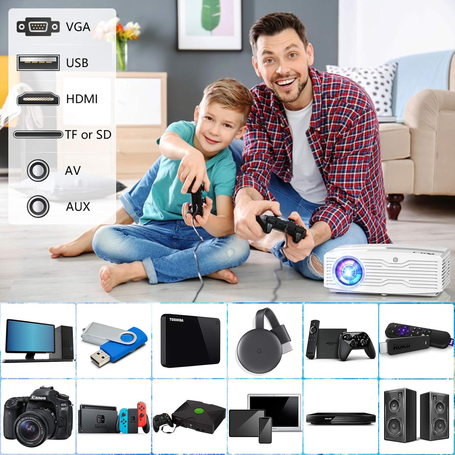 【Flexible Compatibility – More Choices, More Freedom】 To meet the various needs of our customers, our projector has been upgraded to compatible with the smartphones, tablets, laptop, PC, TV stick, DVD player, USB flash drive, SD/TF card and X-box. More choices offer you more freedom with more fun.