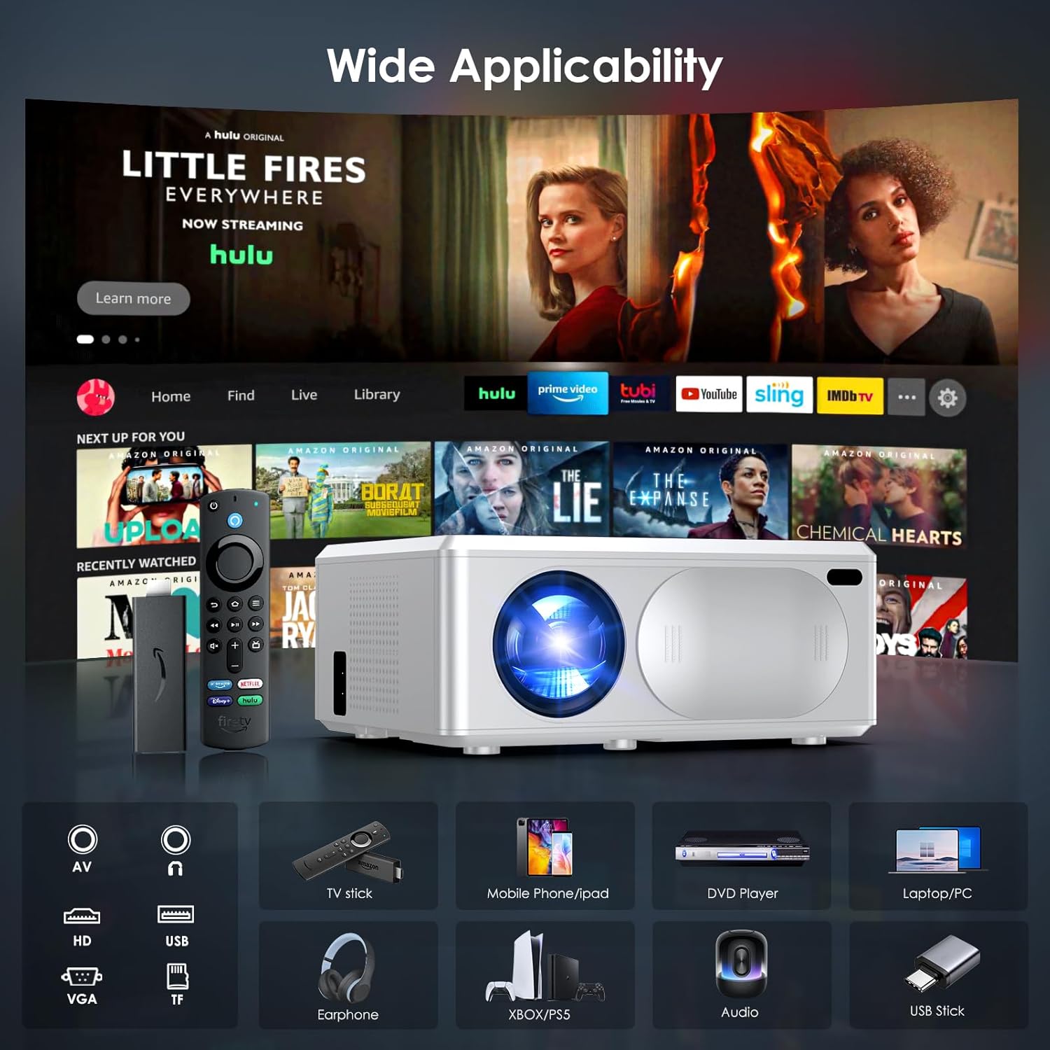 【Mini Carry-on size】M2 mini projector compatible with smartphone, TV stick, computer, tablet, speaker, Roku, etc. M2’s smaller size makes it widely applicable to diverse scenarios such as home theater, outdoor activities (garden parties, camping), conference presentations, and game competitions. With strong compatibility and flexible usage, it is easy to create an immersive big-screen experience that meets the needs of various occasions.