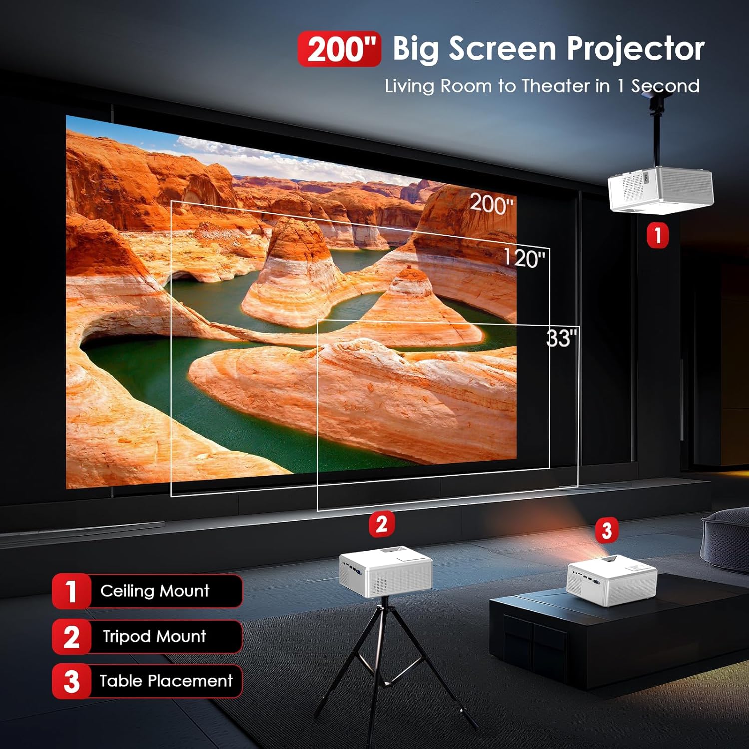 【200 inches Big Screen】M2 movie projector features a 15° keystone correction function that easily solves the problem of tilted images caused by placement. Despite limited space, it can still achieve a stunning projection size of 200 inches within a short projection distance. Its superior projection performance ensures an outstanding big-screen viewing experience for you in a variety of scenarios.
