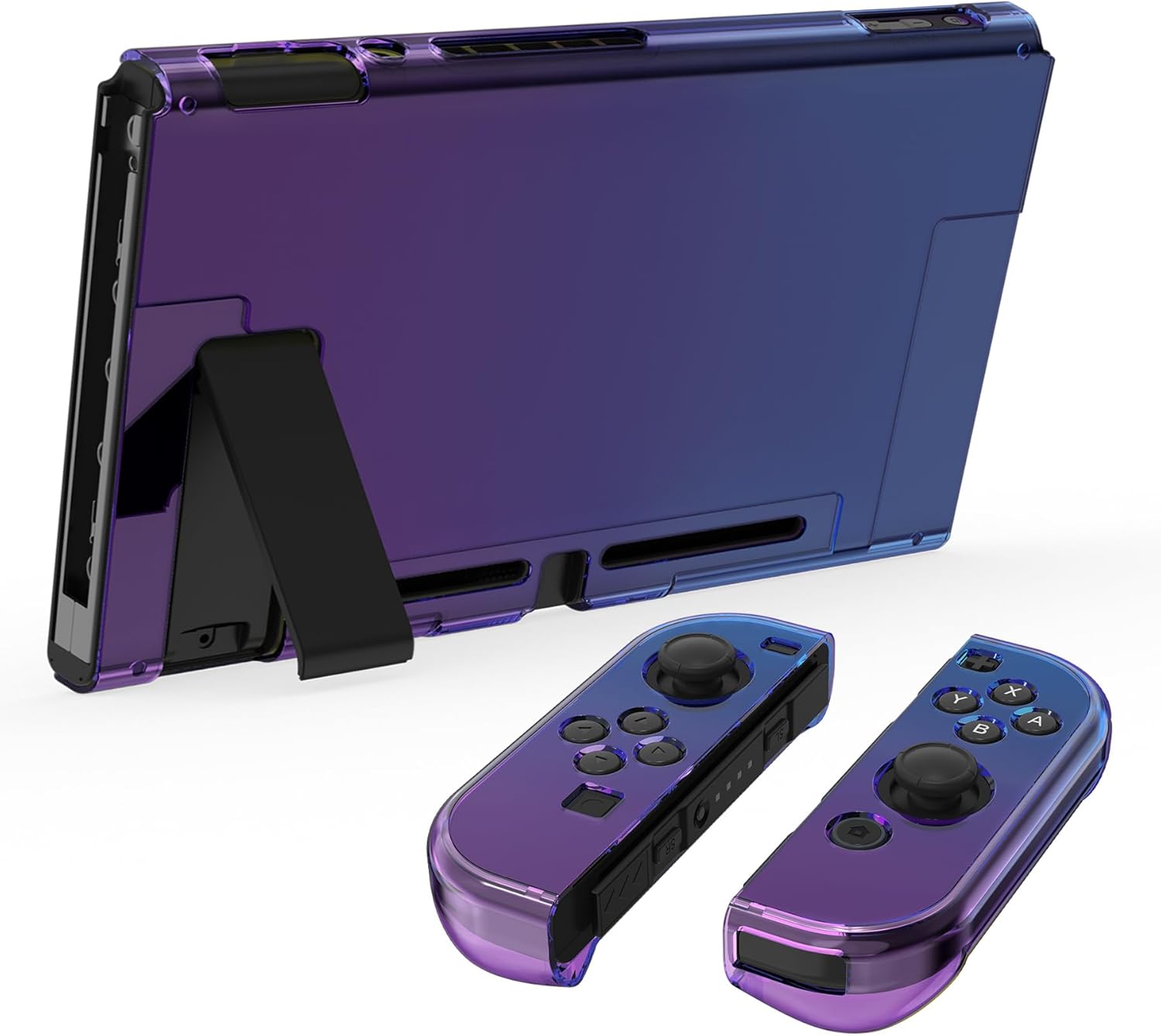 The scratch-resistant plastic cover with a split design, made from sturdy PC material, offers shockproof protection for your Switch, guarding it well against the impact of accidental falls or drops.Precise cutouts for easy access to all ports, buttons, speakers and cameras.
