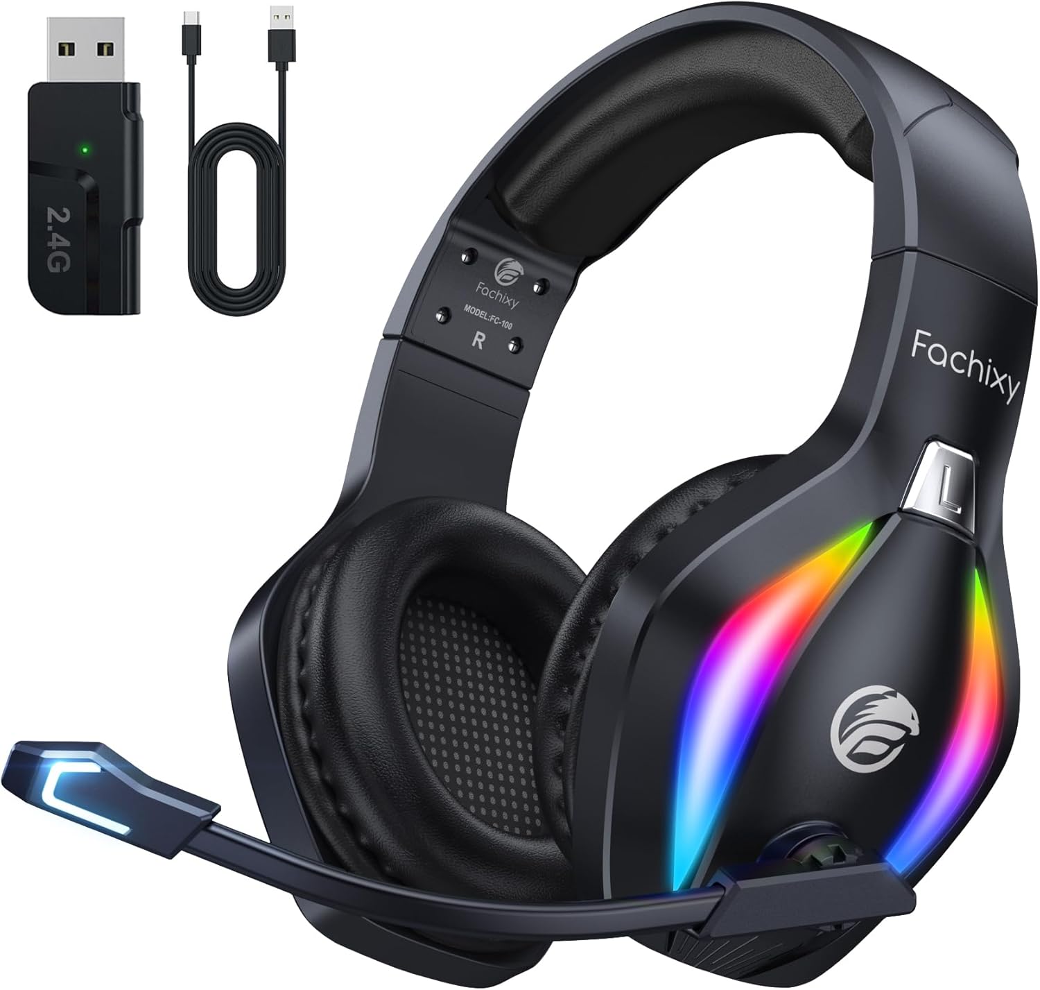 🔋【Up to 50Hrs Battery Life & Fast Charging】Fachixy Wireless Gaming Headphones with microphone have an impressive battery life of up to 50 hours (RGB off stauts)with a voice alert for low power. If the battery charge drops below 10%, a voice alert will notify you. Charging the Bluetooth gaming headset fully takes only 2.5 hours.