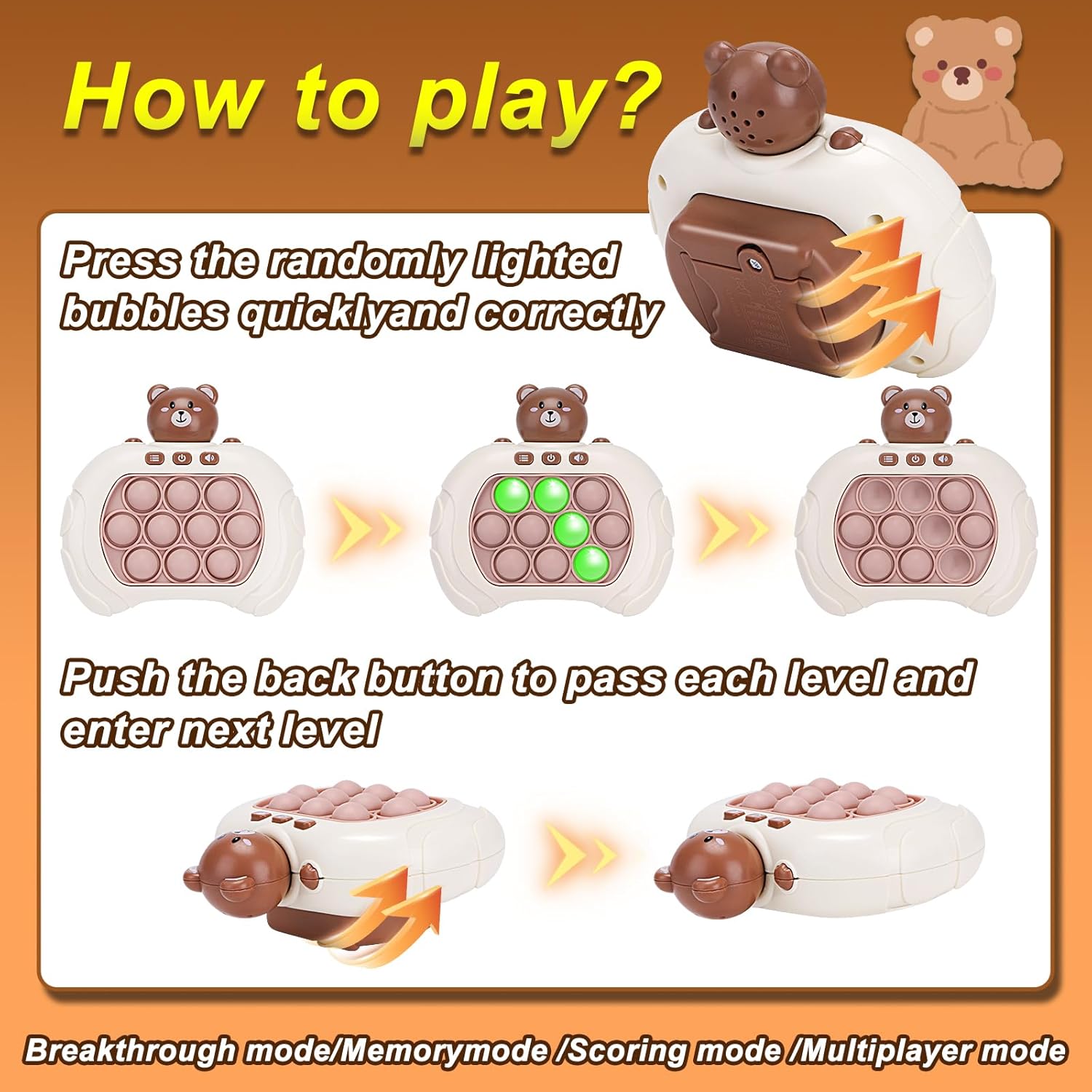 【BEST GIFT FOR KIDS】 This pop game light up fidget toy is very cute in shape, suitable for children, teenagers & adults. In addition, it comes with a high quality colorful box, which will be, great gift choice for kids’ birthday, Children’s Day, Thanksgiving, Halloween, Christmas, New Year and other festivals. Note:More detailed game play is in the reference manual, we suggest to check the reference manual before you start playing.