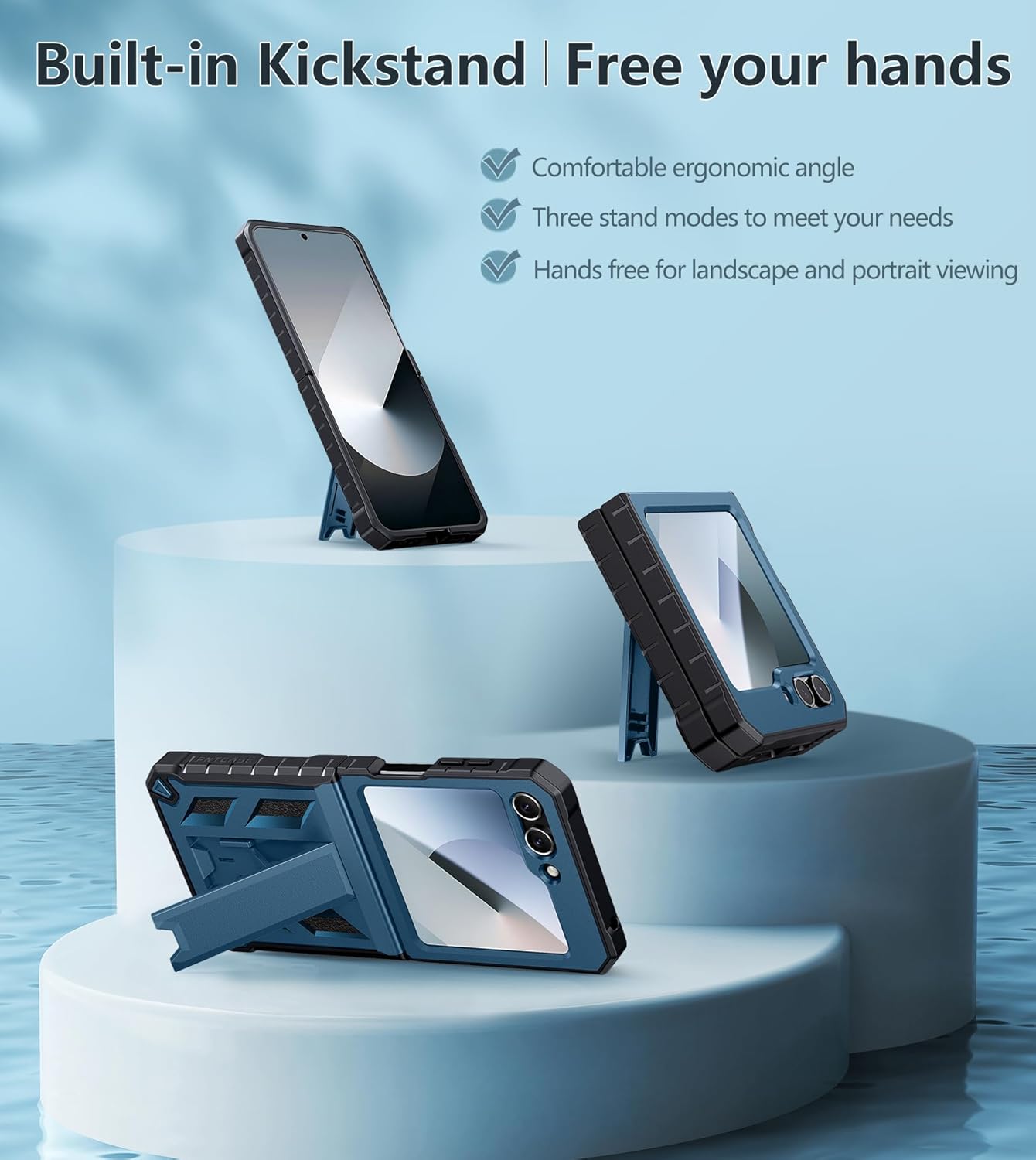 Built-in Kickstand: This shockproof samsung z flip 6 case with hidden foldable flexible stand works perfectly both in vertical and horizontal stable stand angles.Convenient for reading, watching movies, playing games, and face-time with your friends. Provides hands-free portrait and landscape viewing