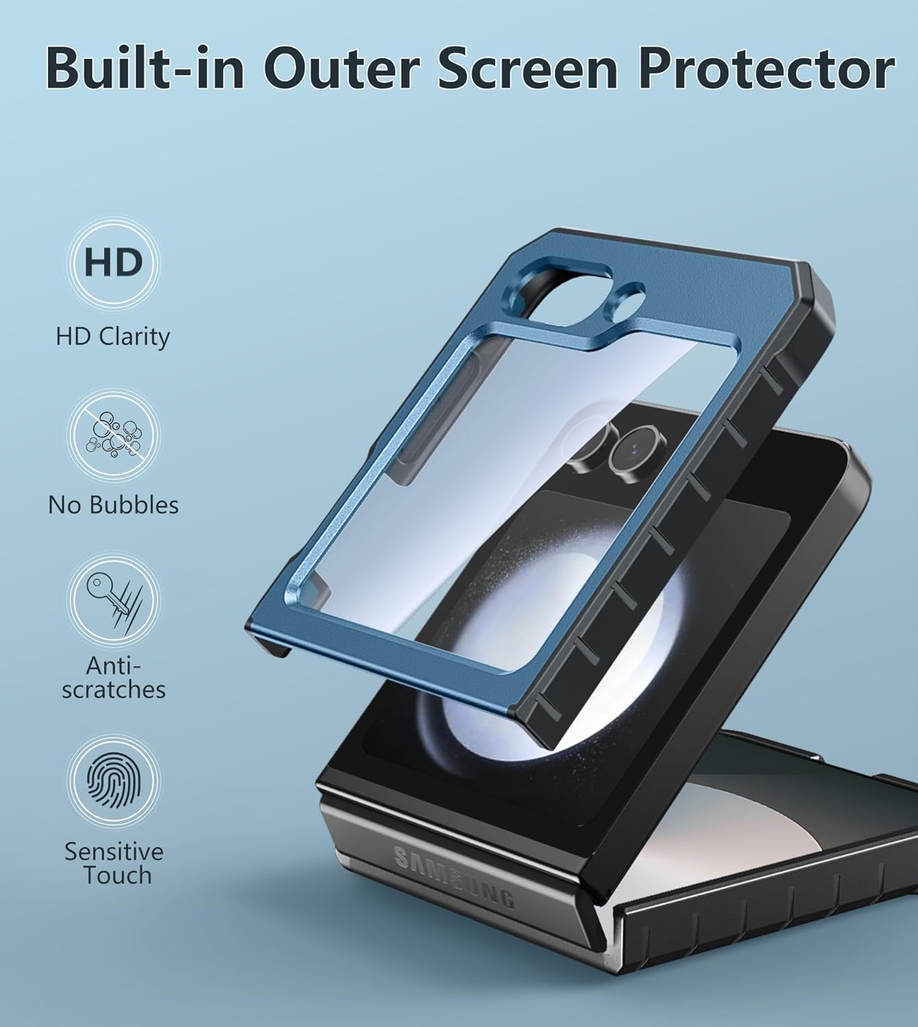 Built-in Outer Screen Protector: This z flip 6 case with a built-in PET screen protector which prevents your phone from scratches, scrapes,and bumps while maintaining its original response sensitivity. Ease of installation and easy to remove and clean