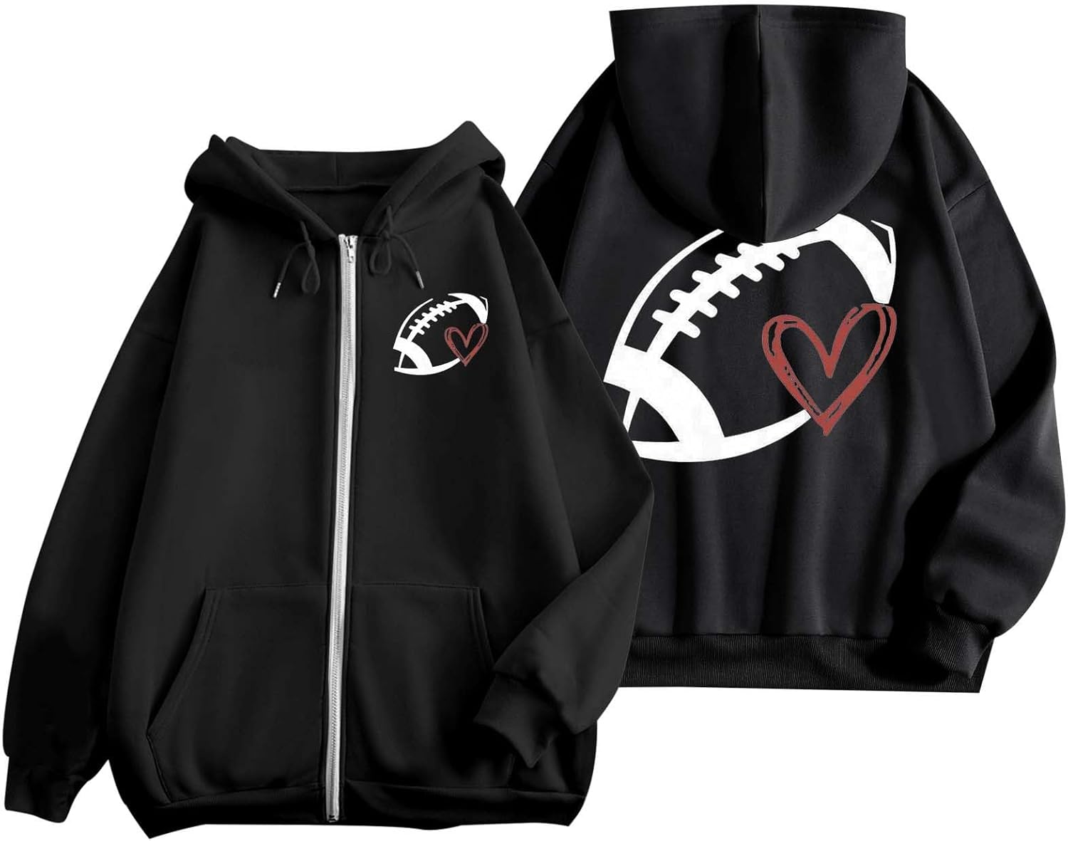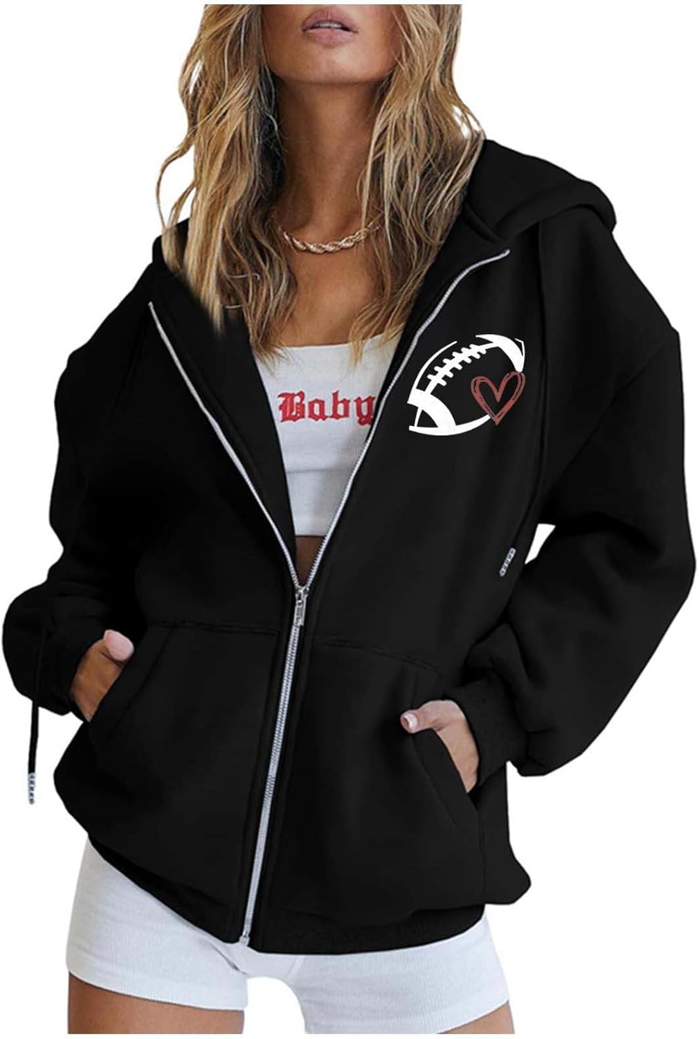 Football Game Day Zip Up Hoodie Women Long Sleeve Fleece Game Day Sweatshirt Top Fall Fashion Teen Girls Preppy Clothes 2024
