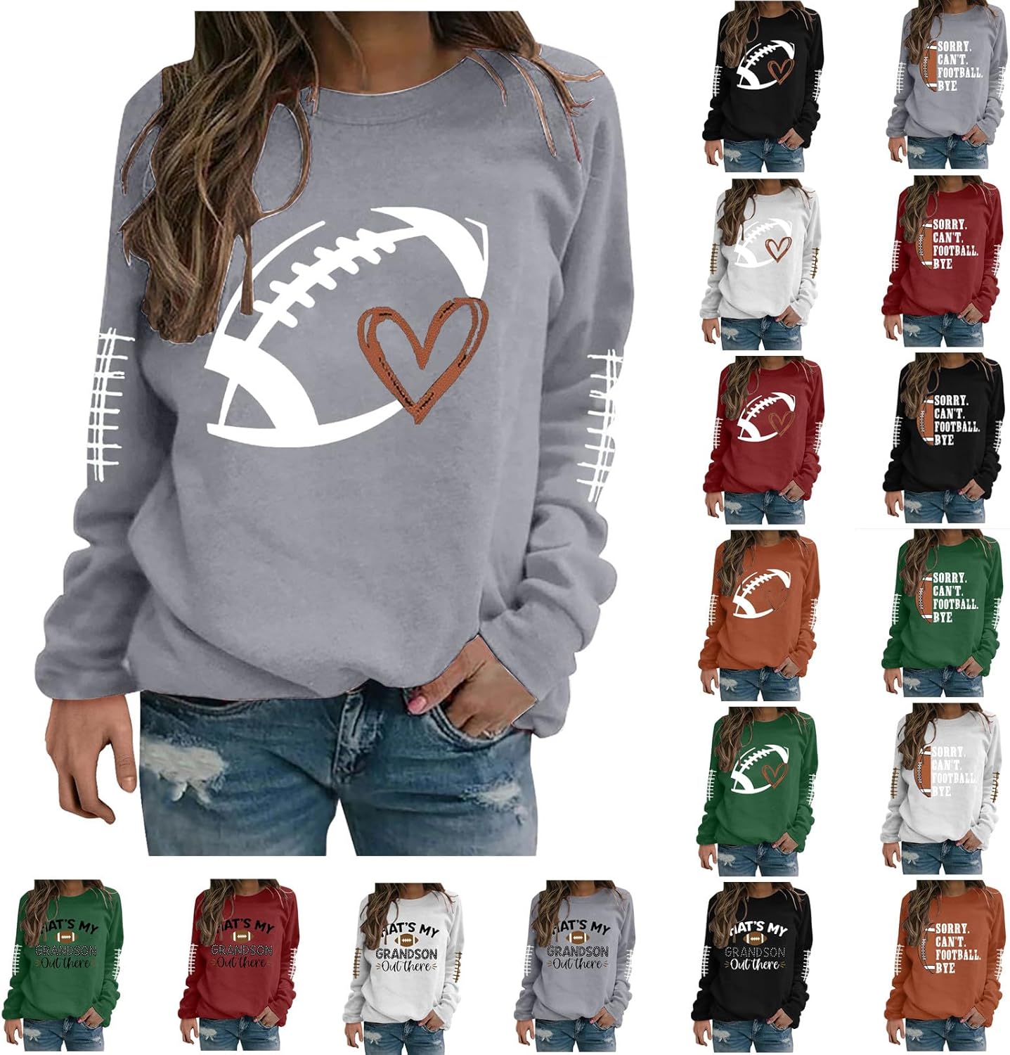 Football Sweatshirts for Women Game Day 2024 Fall Lightweight Plus Size Cute Printed Long Sleeve Crewneck Pullover